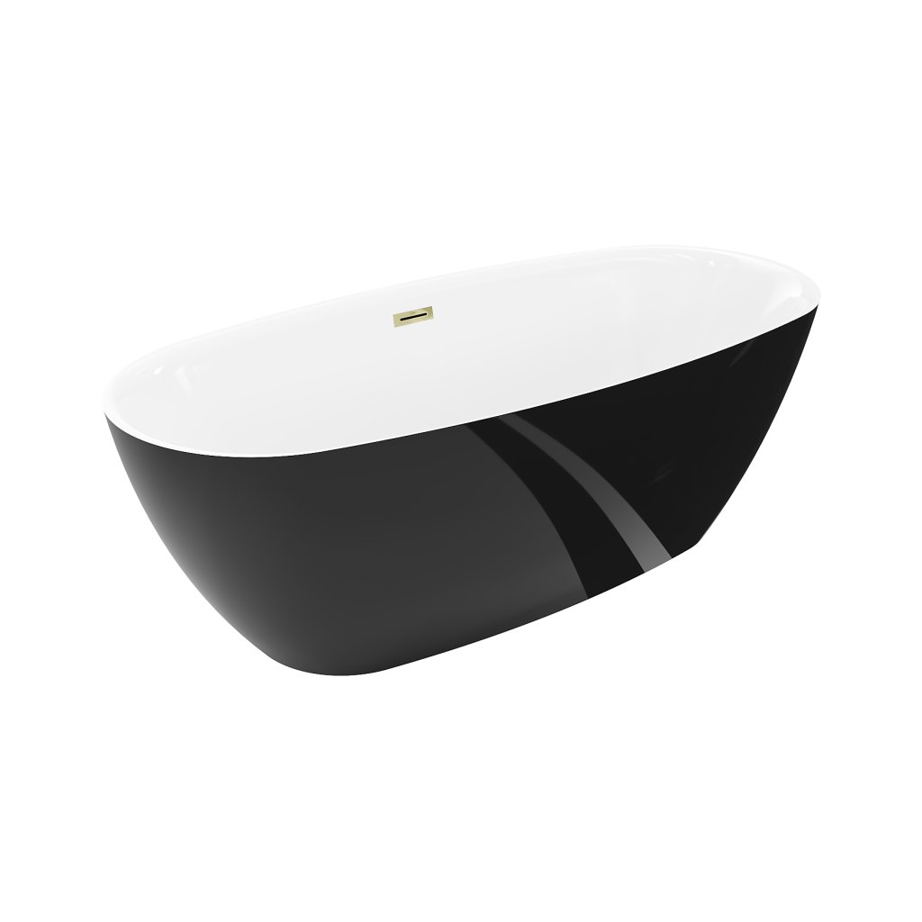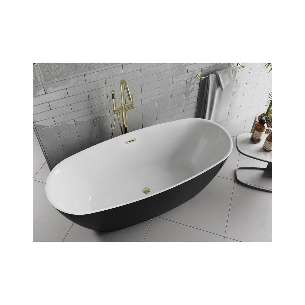 Mexen Luvo Slim, voľne stojaca vaňa 170 × 75 cm, biela-čierna, zlatý lesklý prepad, 52801707575-50