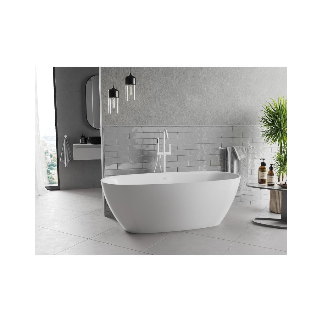 Mexen Luvo Slim, voľne stojaca vaňa 170 × 75 cm, biela lesklá, biely prepad, 52801707500-20