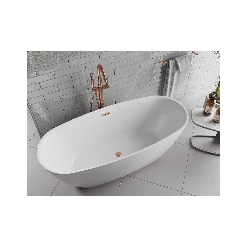 Mexen Luvo Slim, voľne stojaca vaňa 170 × 75 cm, biela lesklá, medený prepad, 52801707500-65