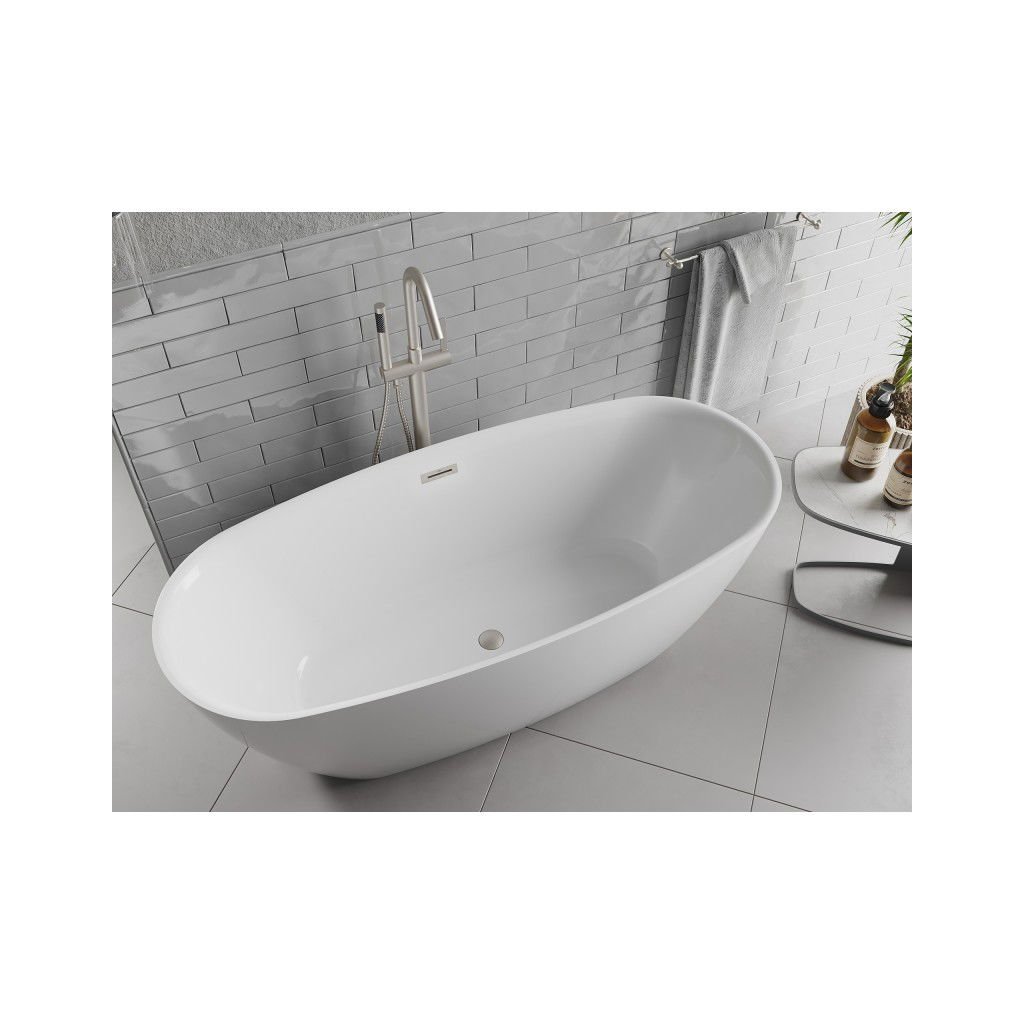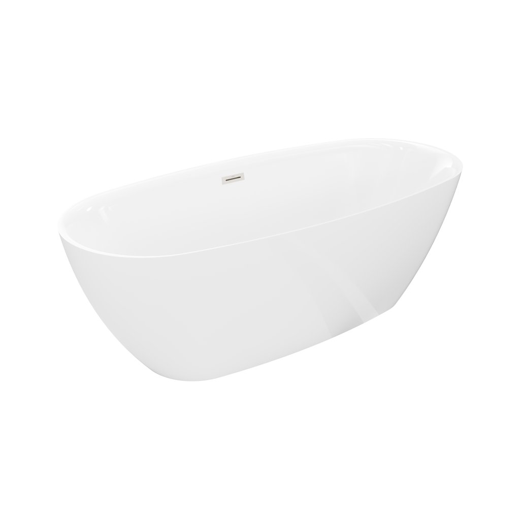 Mexen Luvo Slim, voľne stojaca vaňa 170 × 75 cm, biela lesklá, oceľový prepad, 52801707500-97