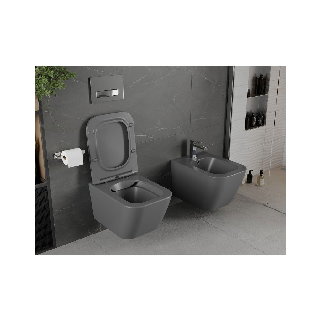 Mexen Madox, Rimless závesná wc misa 515x365x350 mm s pomaly padajúcim sedátkom SLIM z duroplastu, svetlá šedá, 30154061