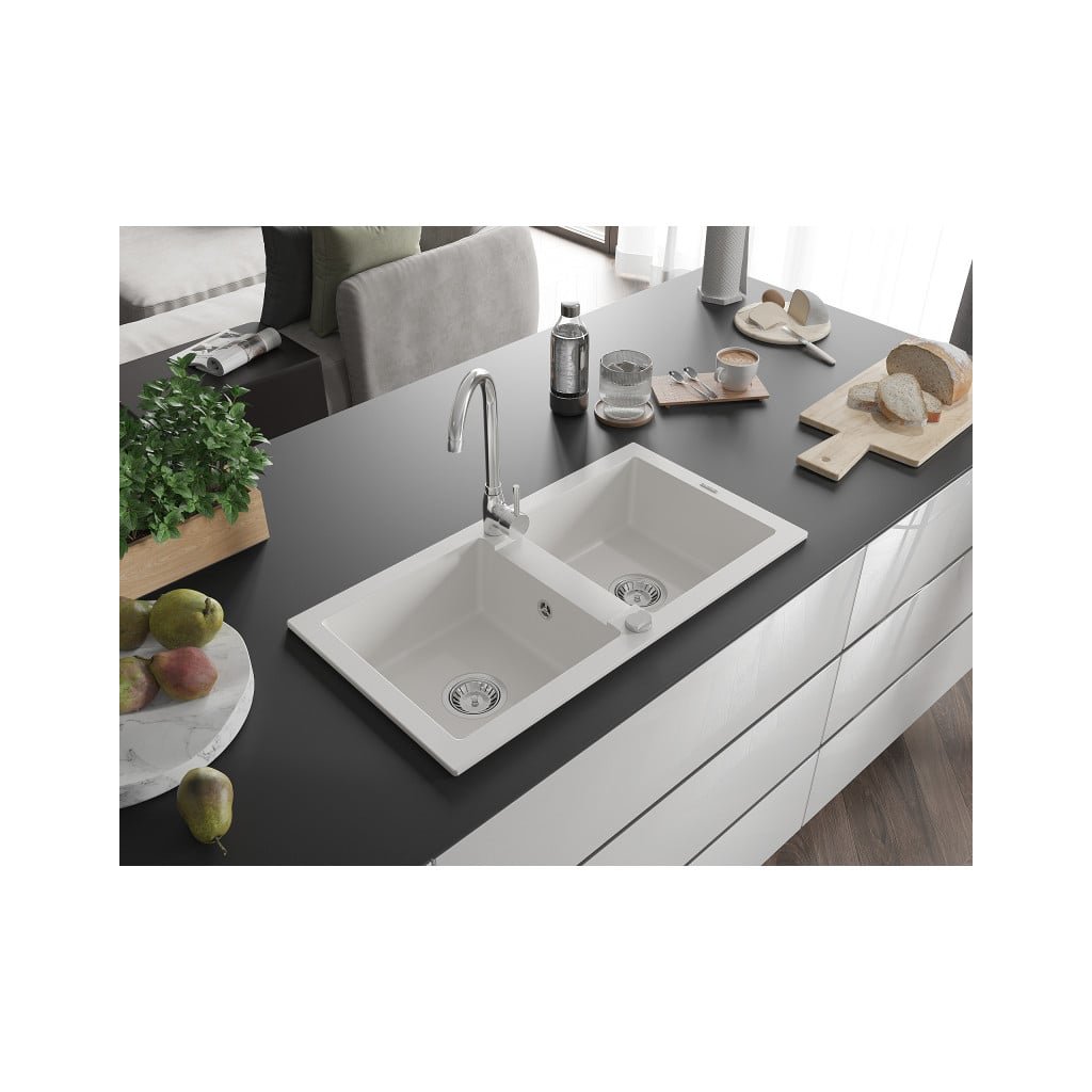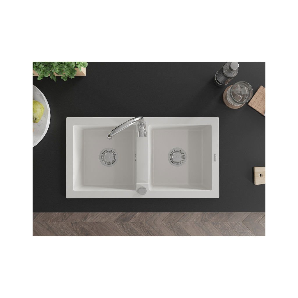 Mexen Mario - drez granitový 82,0x43,6cm, 2-komorový, biela, 6504822000-20