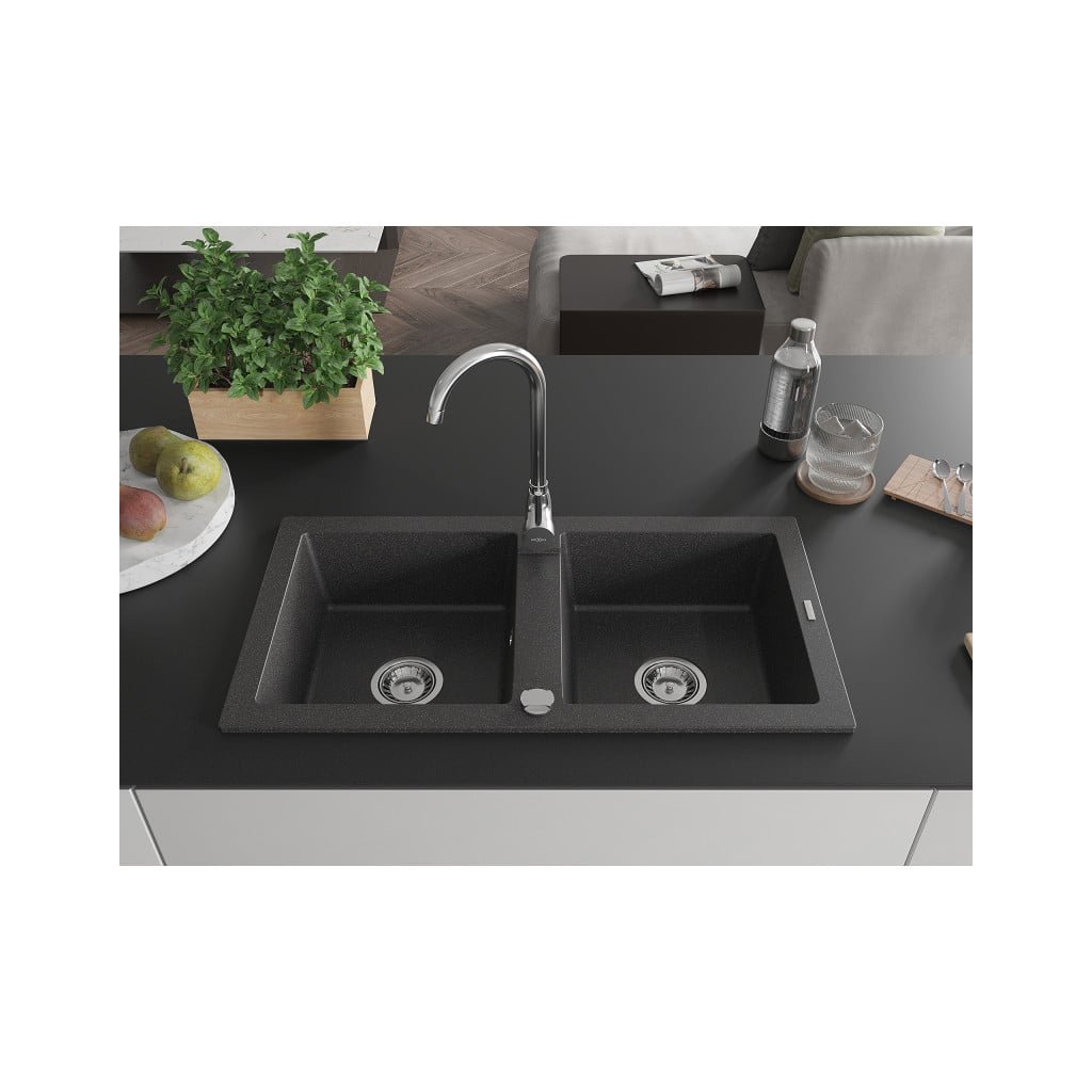 Mexen Mario - drez granitový 82,0x43,6cm, 2-komorový, čierna-škvrny, 6504822000-76