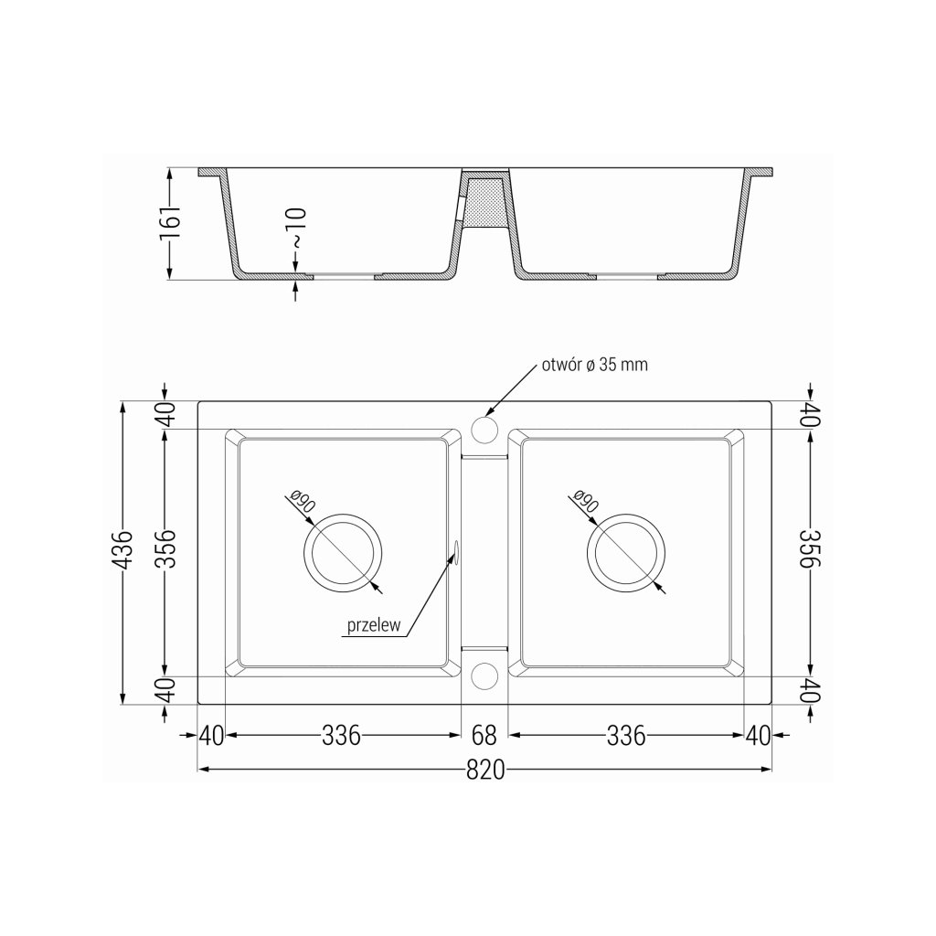 - Odtokový otvor: 3,5 ”;fi = 90 mm