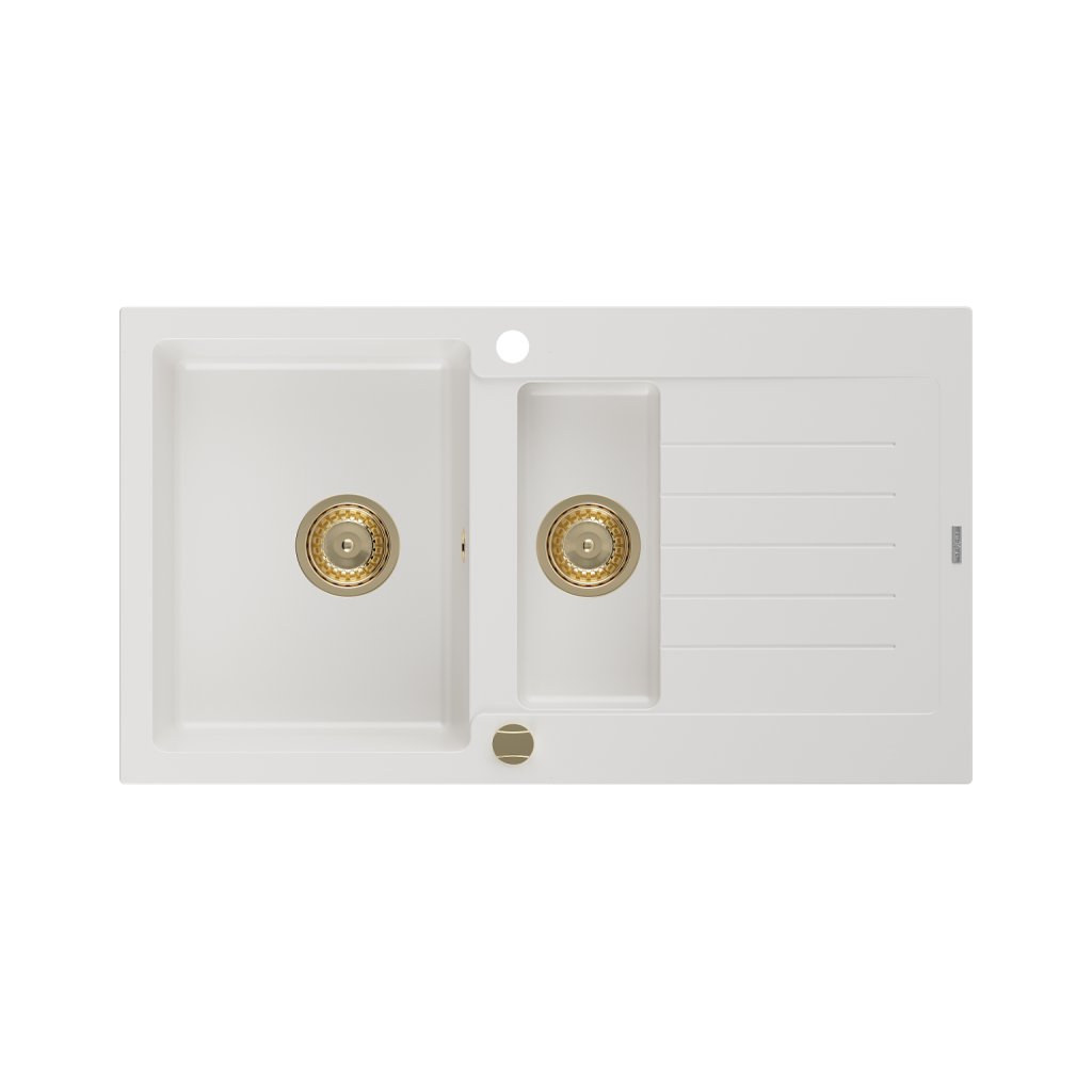 Mexen Matias - drez granitový 900x505x200 mm, 1,5-komorový, biela so zlatým sifónom, 6502901505-20-G