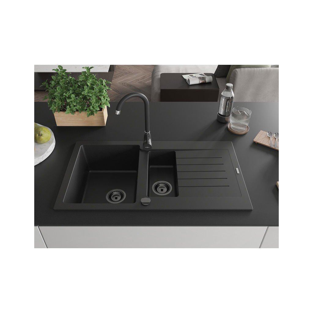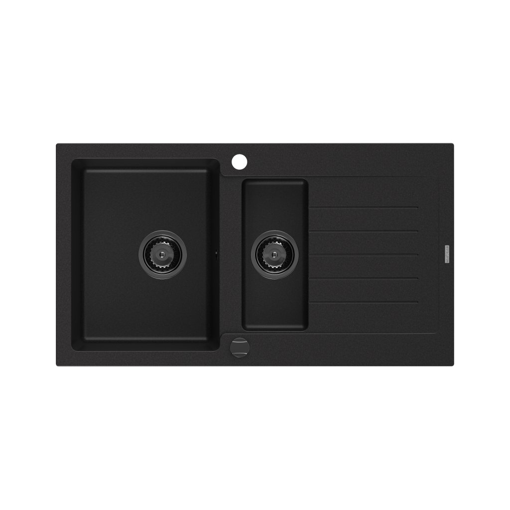 Mexen Matias - drez granitový 900x505x200 mm, 1,5-komorový, čierna s čiernym sifónom, 6502901505-77-B