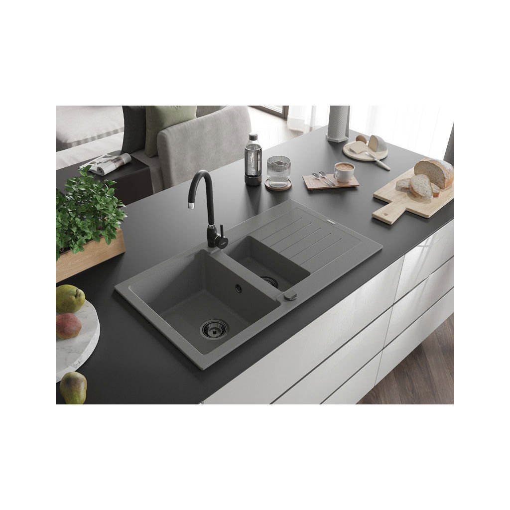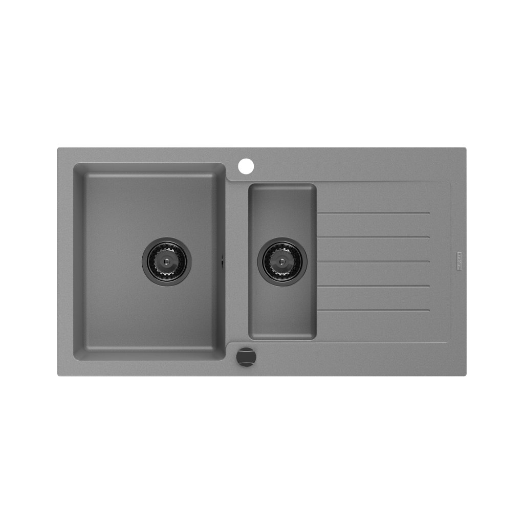 Mexen Matias - drez granitový 900x505x200 mm, 1,5-komorový, šedá s čiernym sifónom, 6502901505-71-B