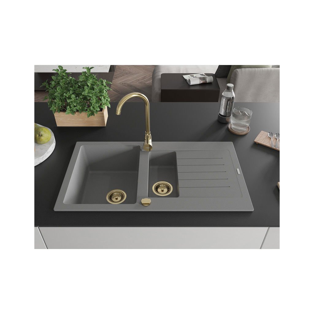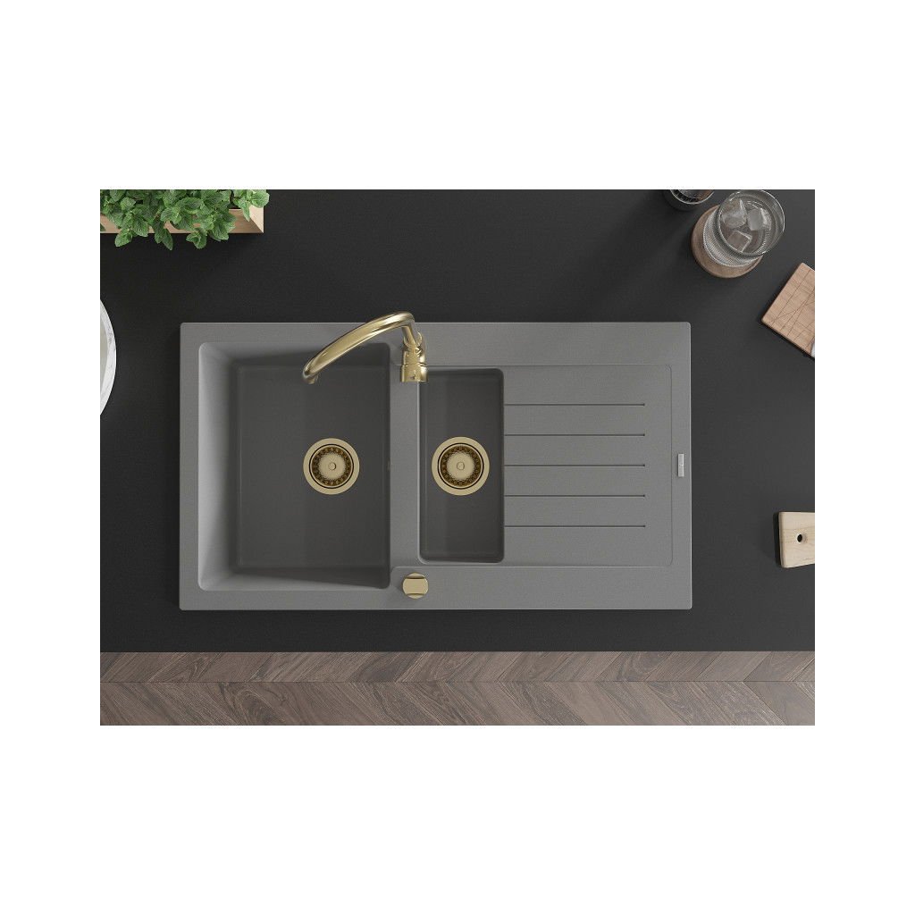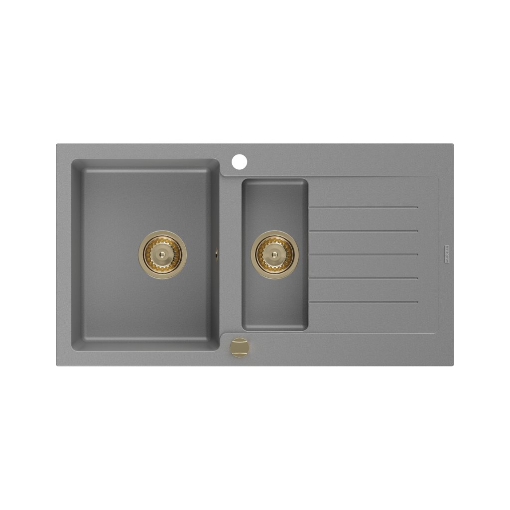 Mexen Matias - drez granitový 900x505x200 mm, 1,5-komorový, šedá so zlatým sifónom, 6502901505-71-G