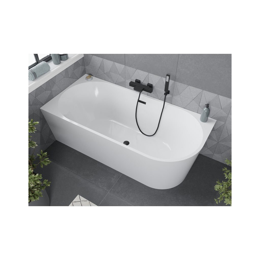 Mexen Mia, voľne stojaca rohová vaňa, lavá, 150 x 75 cm, biela, čierny matný prepad, 52691507500L-70