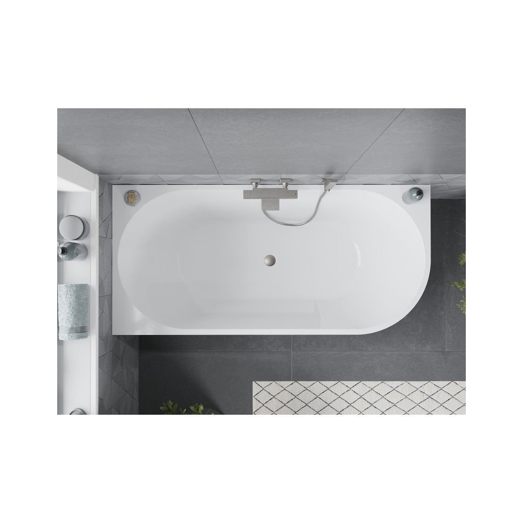 Mexen Mia, voľne stojaca rohová vaňa, lavá, 150 x 75 cm, biela-čierna, brúsená oceľ prepad, 52691507575L-97