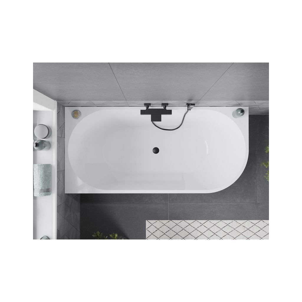 Mexen Mia, voľne stojaca rohová vaňa, lavá, 150 x 75 cm, biela-čierna, čierny matný prepad, 52691507575L-70