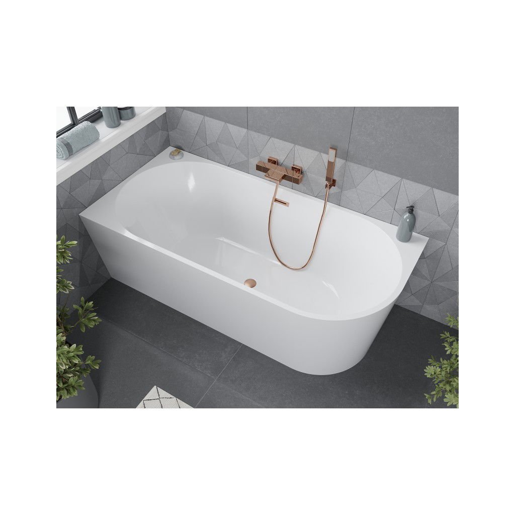 Mexen Mia, voľne stojaca rohová vaňa, lavá, 160 x 75 cm, biela, medený prepad, 52691607500L-65