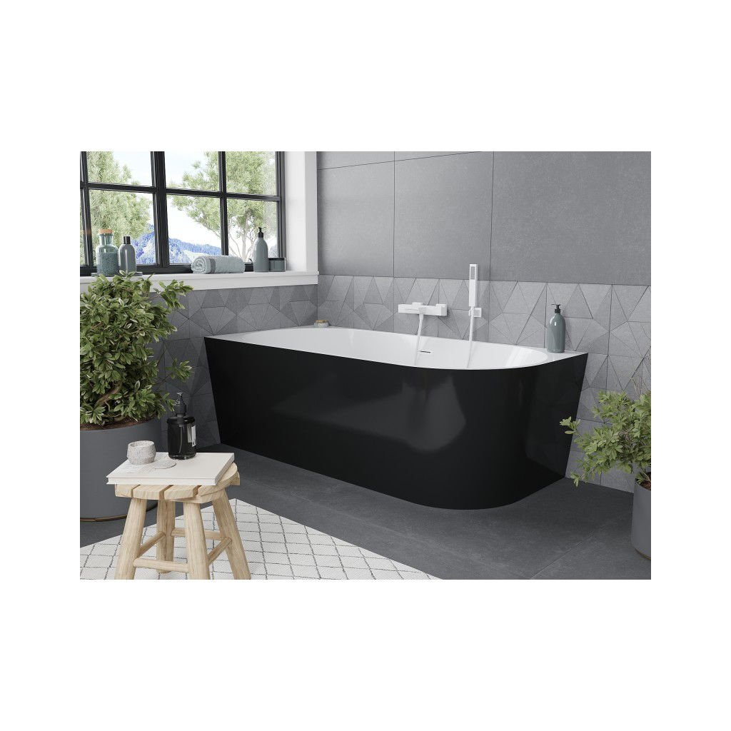Mexen Mia, voľne stojaca rohová vaňa, lavá, 170 x 80 cm, biela-čierna, biely prepad, 52691708075L-20