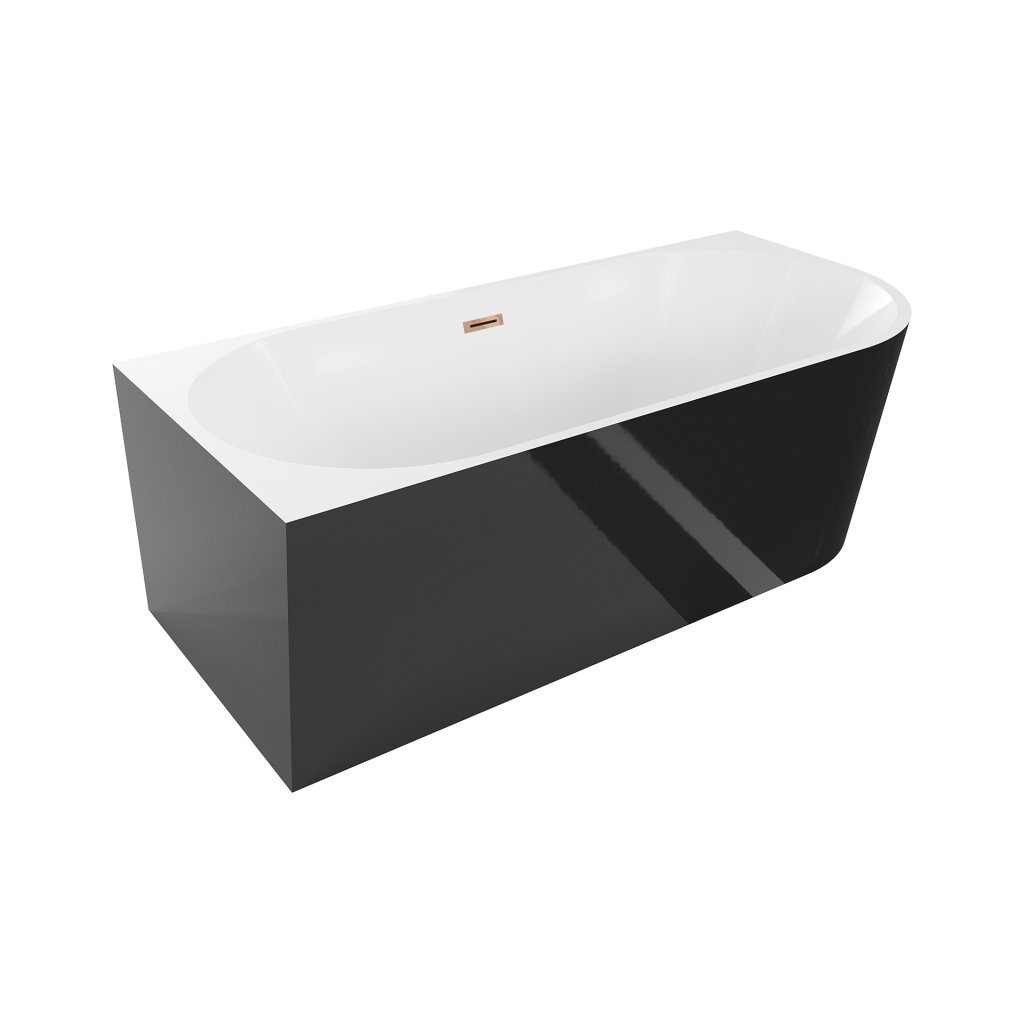 Mexen Mia, voľne stojaca rohová vaňa, lavá, 170 x 80 cm, biela-čierna, ružové zlato prepad, 52691708075L-60
