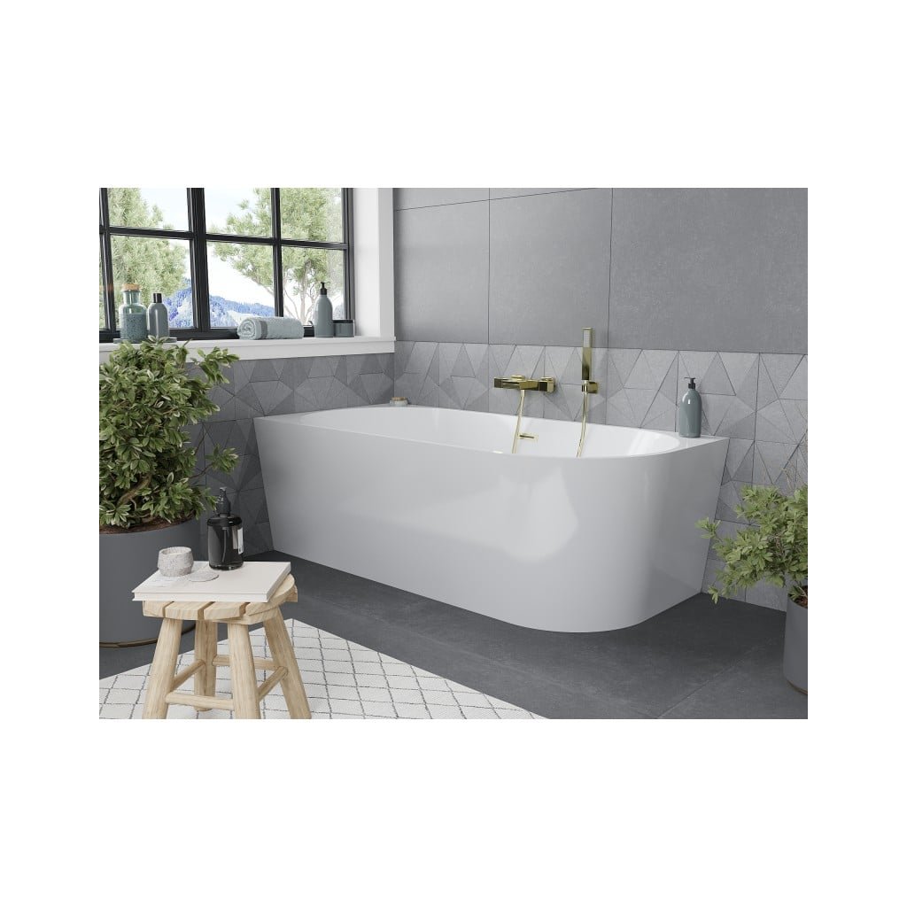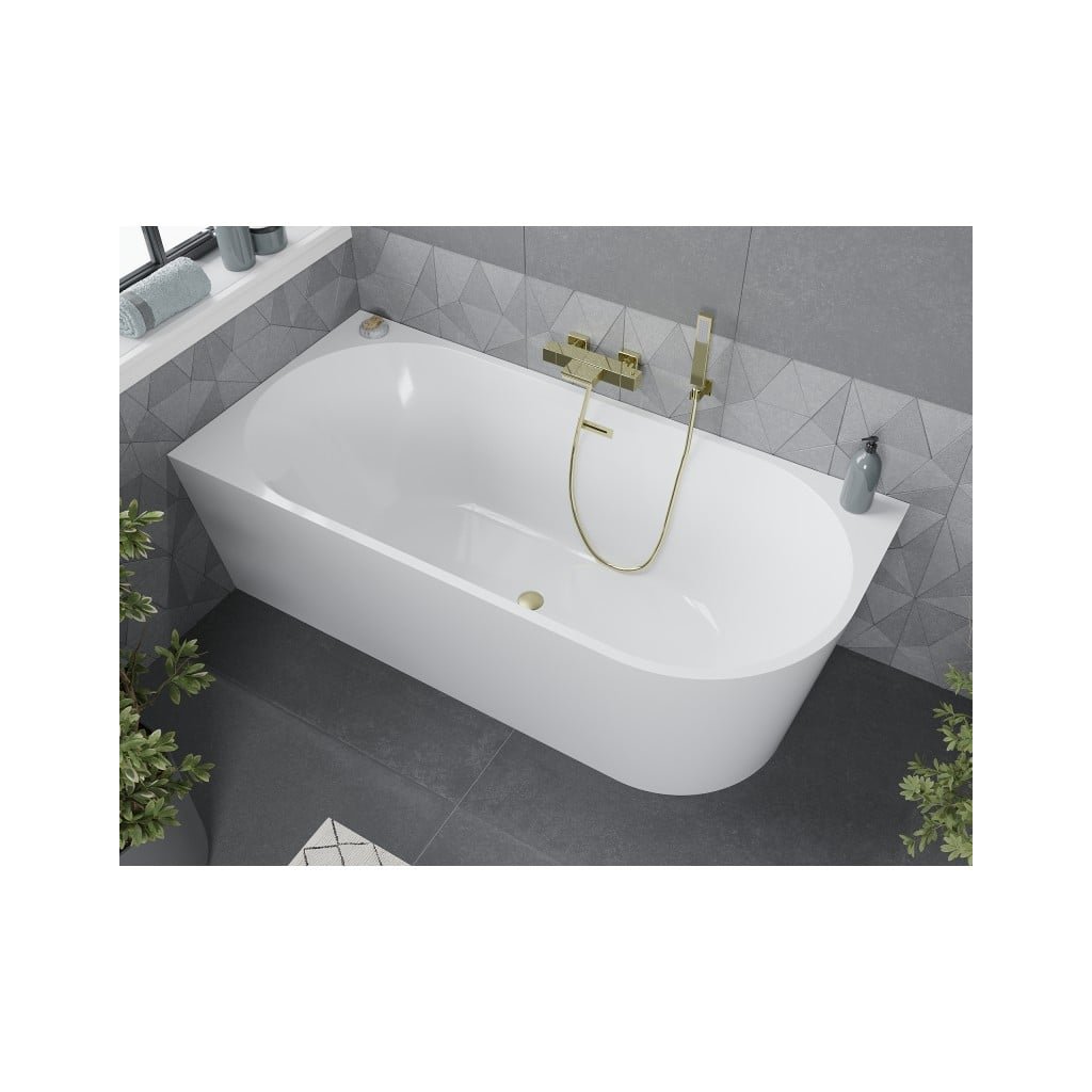 Mexen Mia, voľne stojaca rohová vaňa, lavá, 180 x 80 cm, biela, zlatý matný prepad, 52691808000L-55