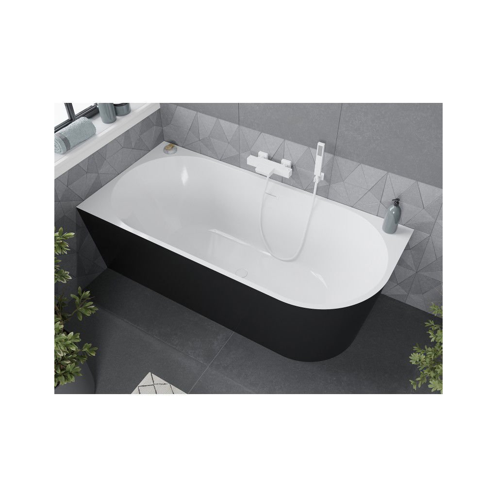 Mexen Mia, voľne stojaca rohová vaňa, lavá, 180 x 80 cm, biela-čierna, biely prepad, 52691808075L-20