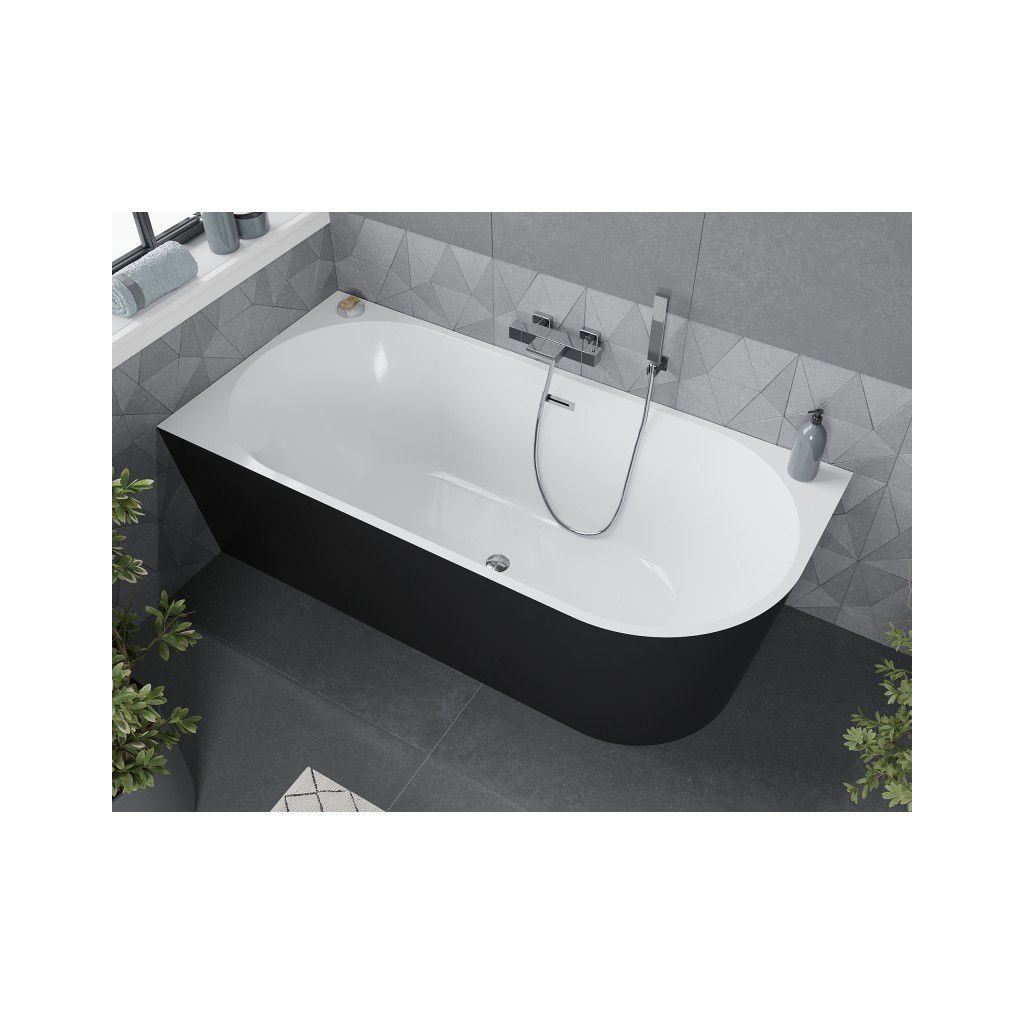 Mexen Mia, voľne stojaca rohová vaňa, lavá, 180 x 80 cm, biela-čierna, chrómový prepad, 52691808075L-01