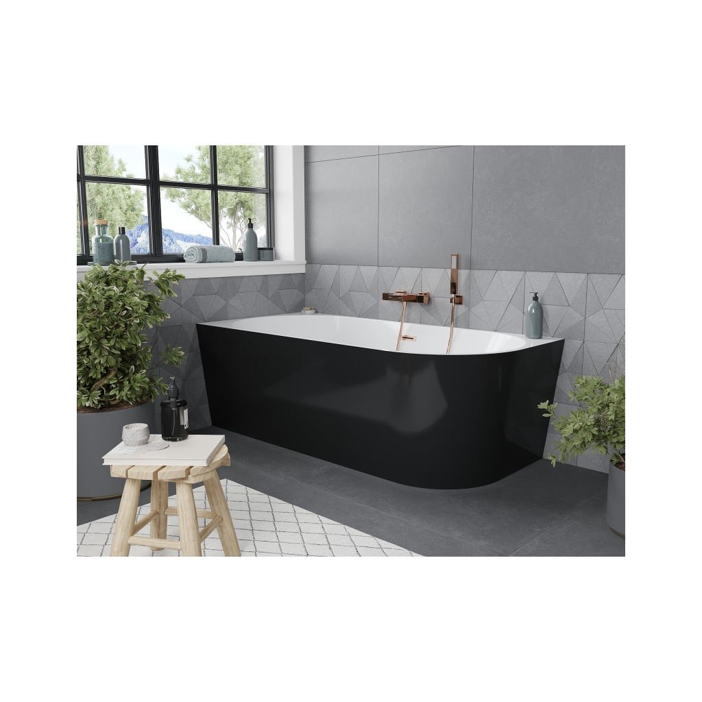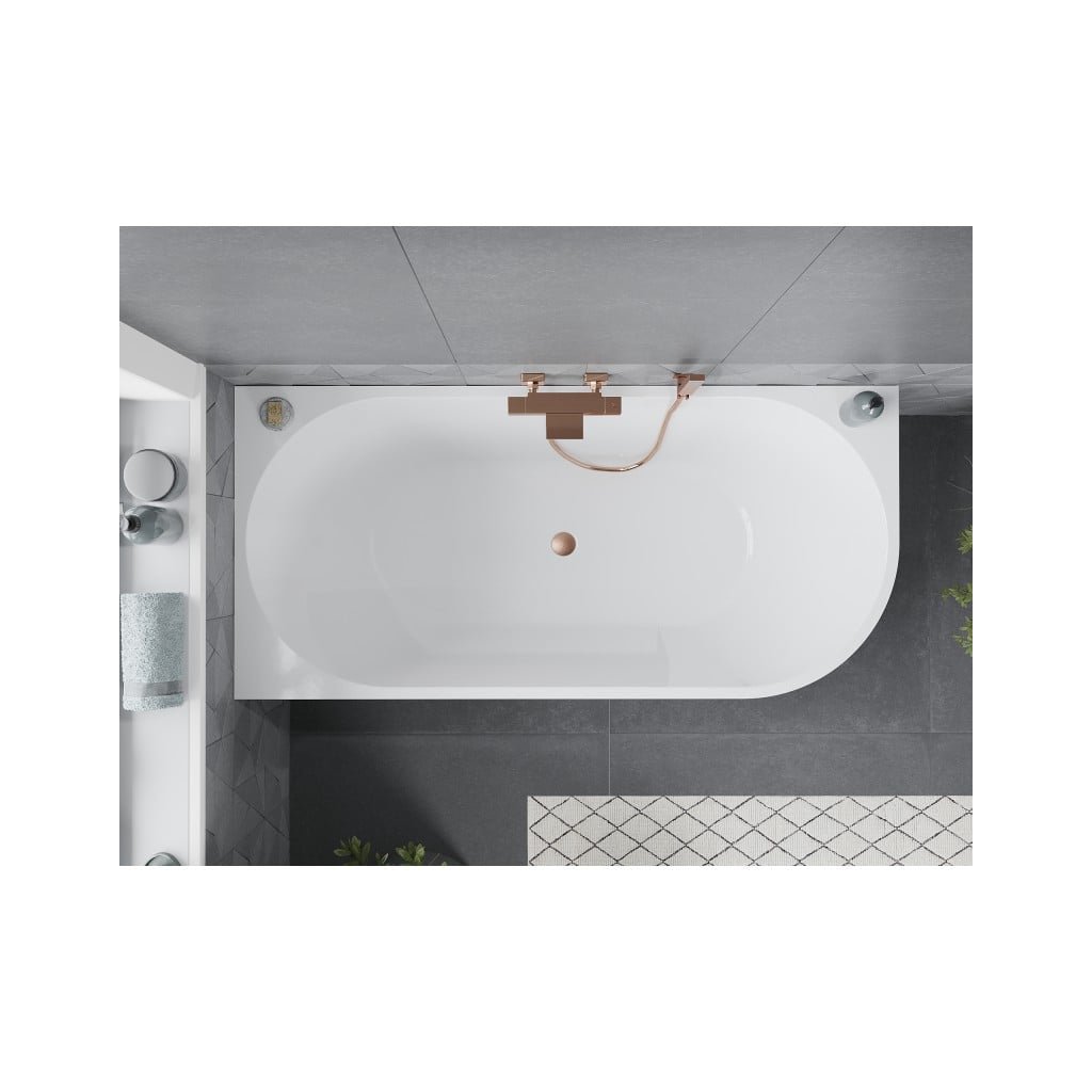 Mexen Mia, voľne stojaca rohová vaňa, lavá, 180 x 80 cm, biela-čierna, medený prepad, 52691808075L-65
