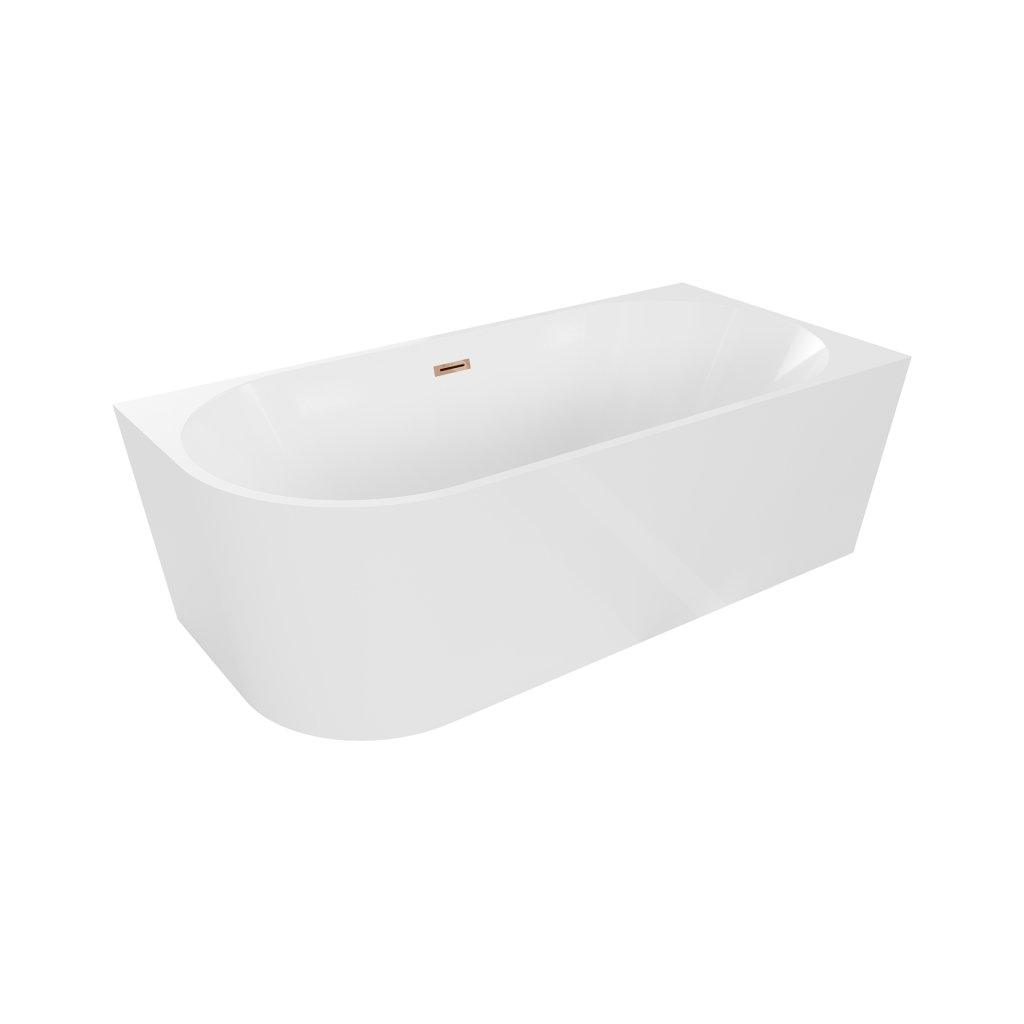 Mexen Mia, voľne stojaca rohová vaňa, pravá, 150 x 75 cm, biela, ružové zlato prepad, 52691507500P-60