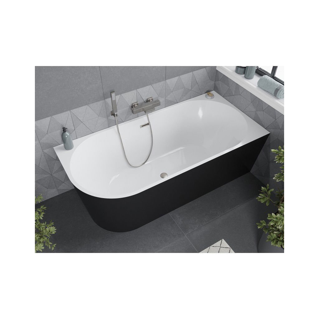 Mexen Mia, voľne stojaca rohová vaňa, pravá, 150 x 75 cm, biela-čierna, brúsená oceľ prepad, 52691507575P-97