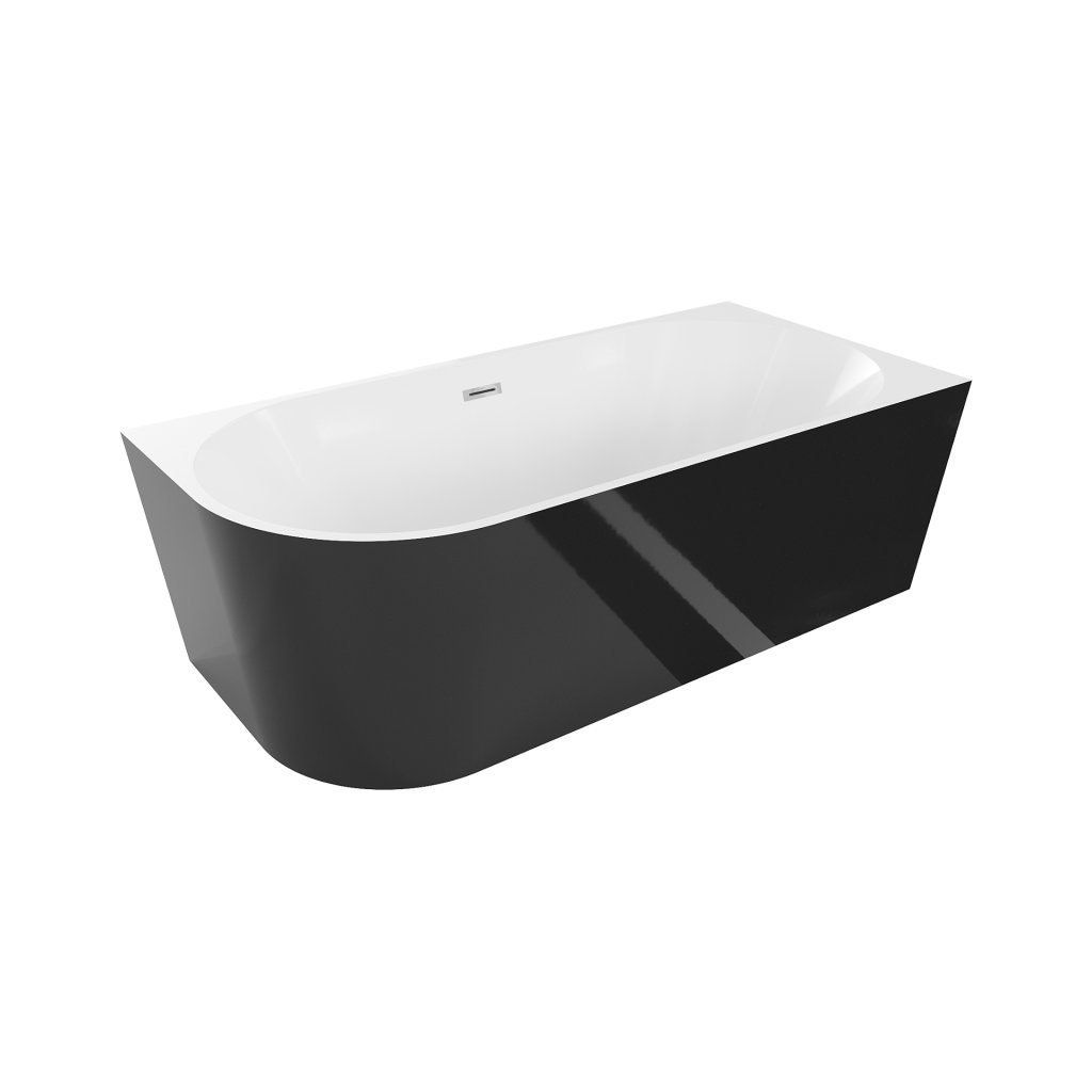 Mexen Mia, voľne stojaca rohová vaňa, pravá, 150 x 75 cm, biela-čierna, chrómový prepad, 52691507575P-01