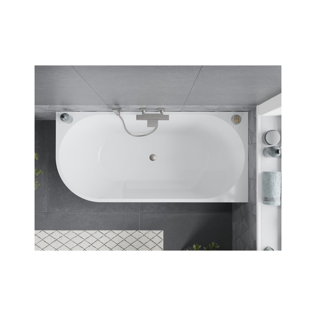 Mexen Mia, voľne stojaca rohová vaňa, pravá, 160 x 75 cm, biela, brúsená oceľ prepad, 52691607500P-97