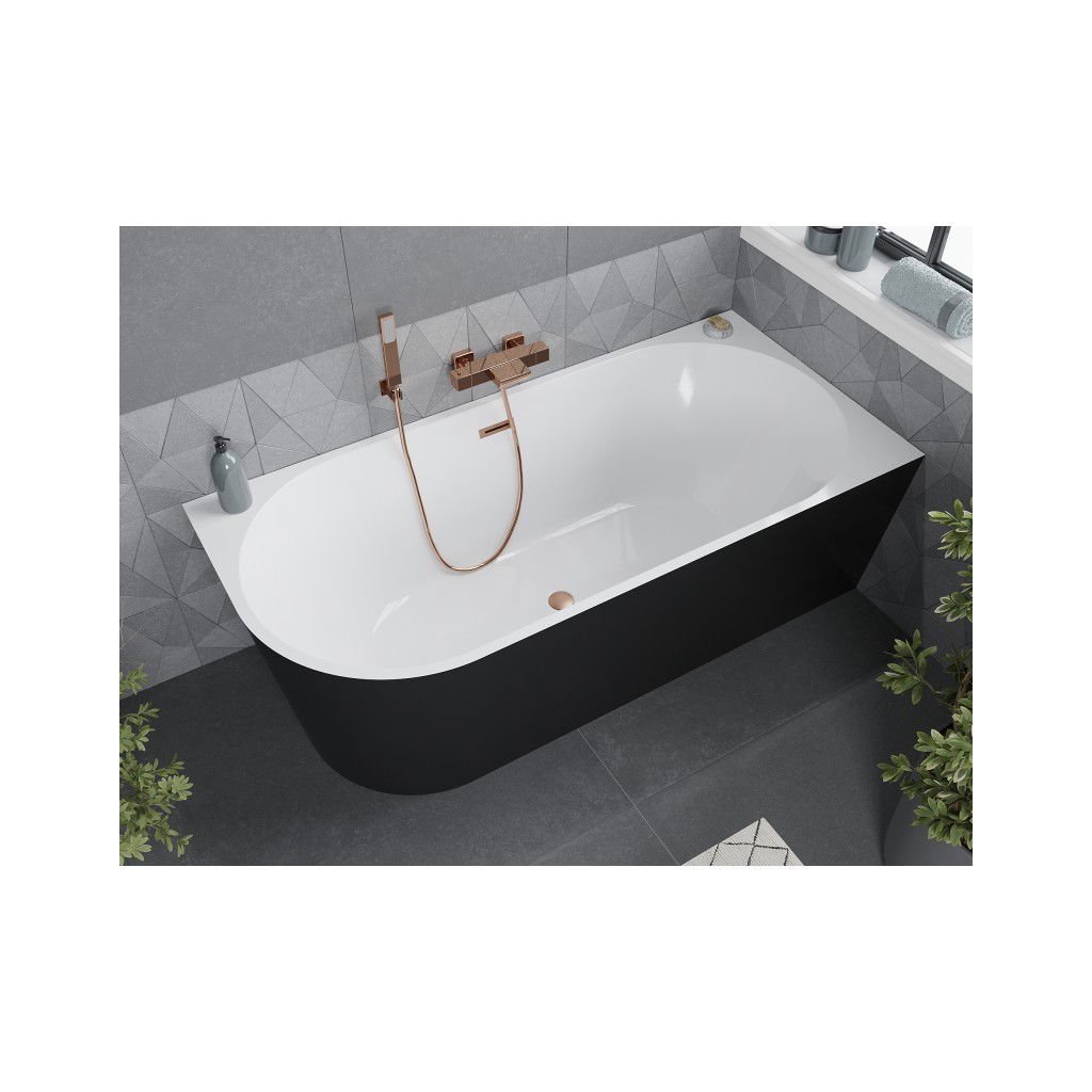 Mexen Mia, voľne stojaca rohová vaňa, pravá, 160 x 75 cm, biela-čierna, medený prepad, 52691607575P-65