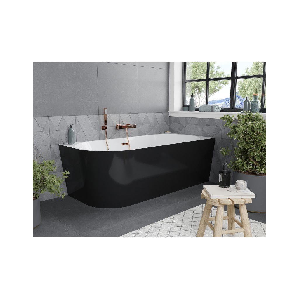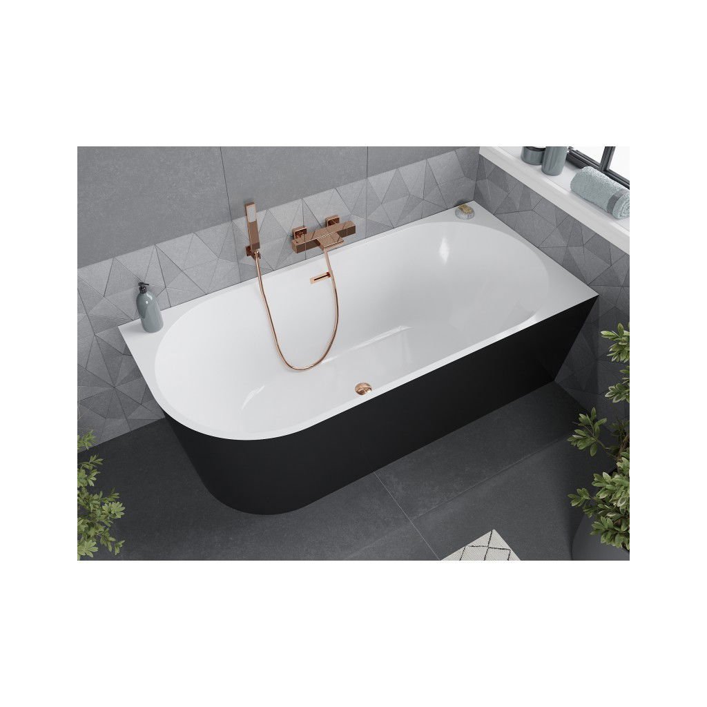 Mexen Mia, voľne stojaca rohová vaňa, pravá, 160 x 75 cm, biela-čierna, ružové zlato prepad, 52691607575P-60