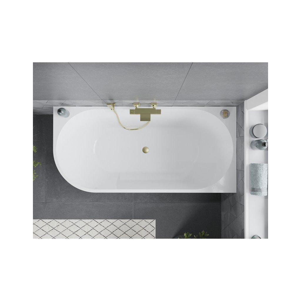 Mexen Mia, voľne stojaca rohová vaňa, pravá, 160 x 75 cm, biela-čierna, zlatý matný prepad, 52691607575P-55