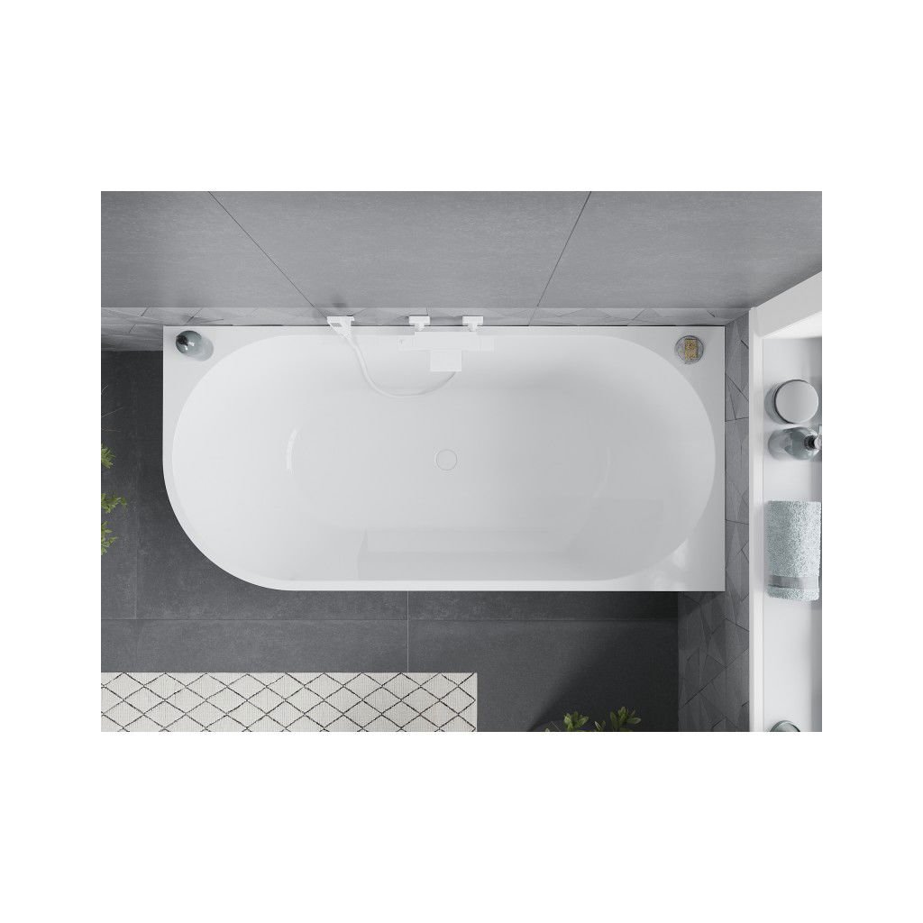 Mexen Mia, voľne stojaca rohová vaňa, pravá, 170 x 80 cm, biela, biely prepad, 52691708000P-20