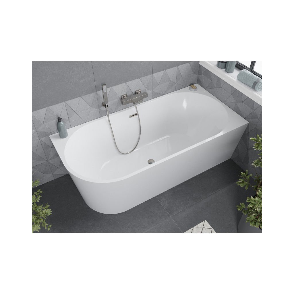 Mexen Mia, voľne stojaca rohová vaňa, pravá, 180 x 80 cm, biela, brúsená oceľ prepad, 52691808000P-97
