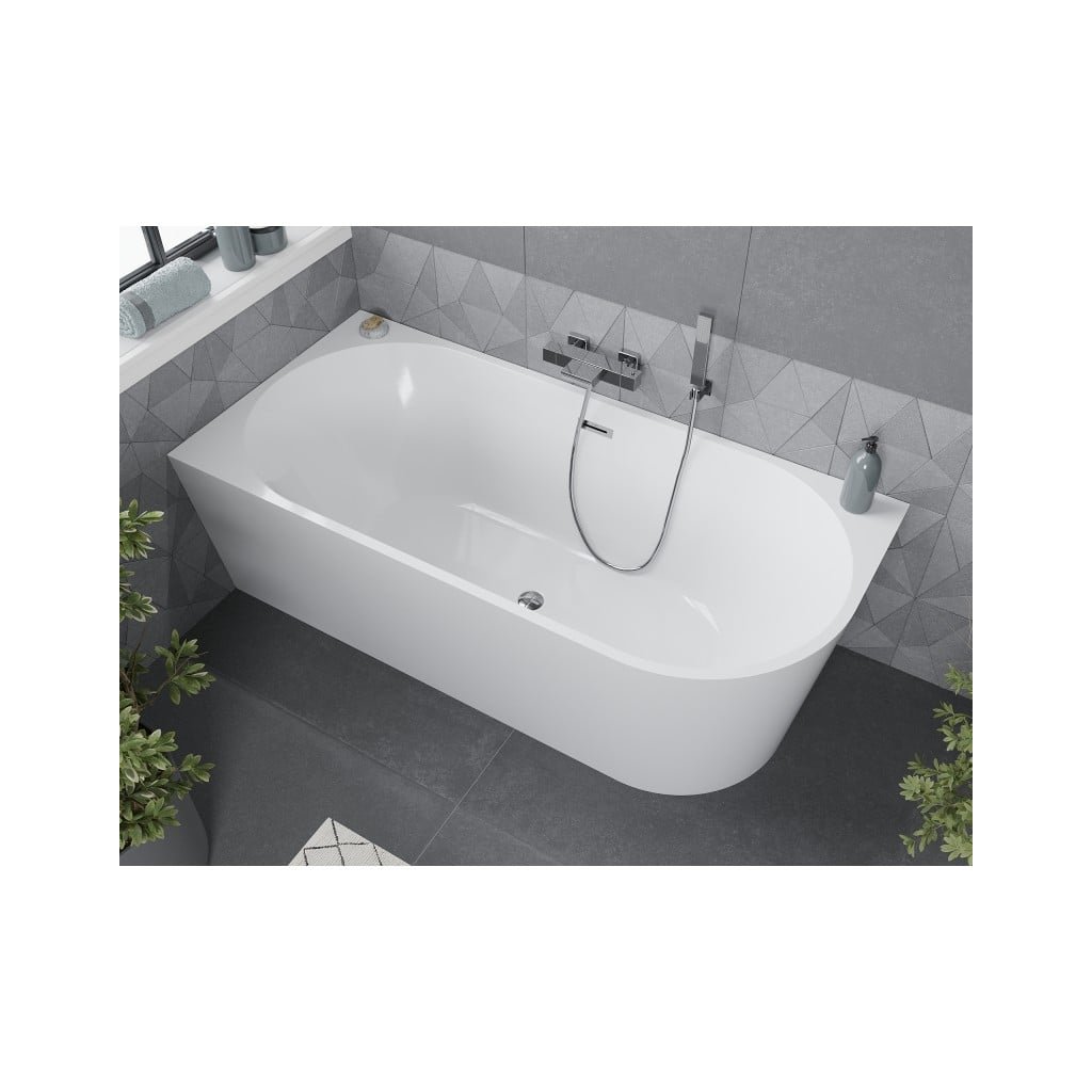 Mexen Mia, voľne stojaca rohová vaňa ľavá 160 x 80 cm, biela, chrómový prepad, 52691608000L-01