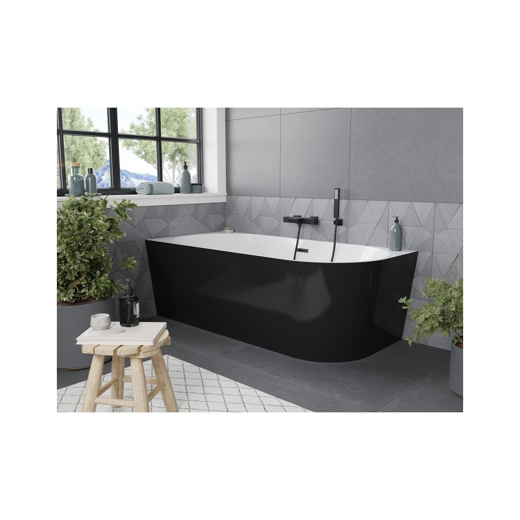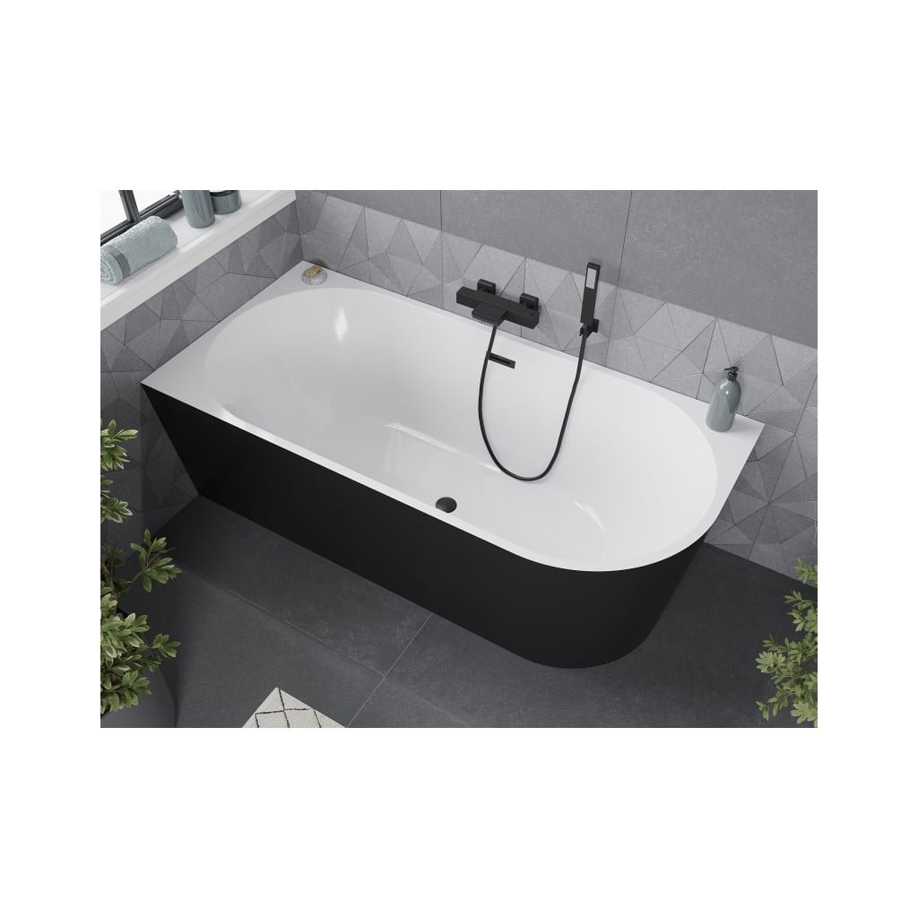 Mexen Mia, voľne stojaca rohová vaňa ľavá 160 x 80 cm, biela/čierna, čierny prepad, 52691608075L-70