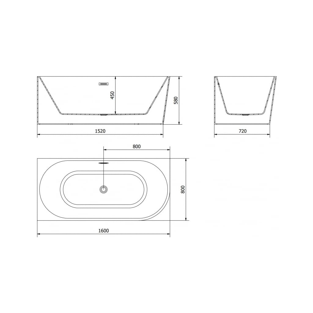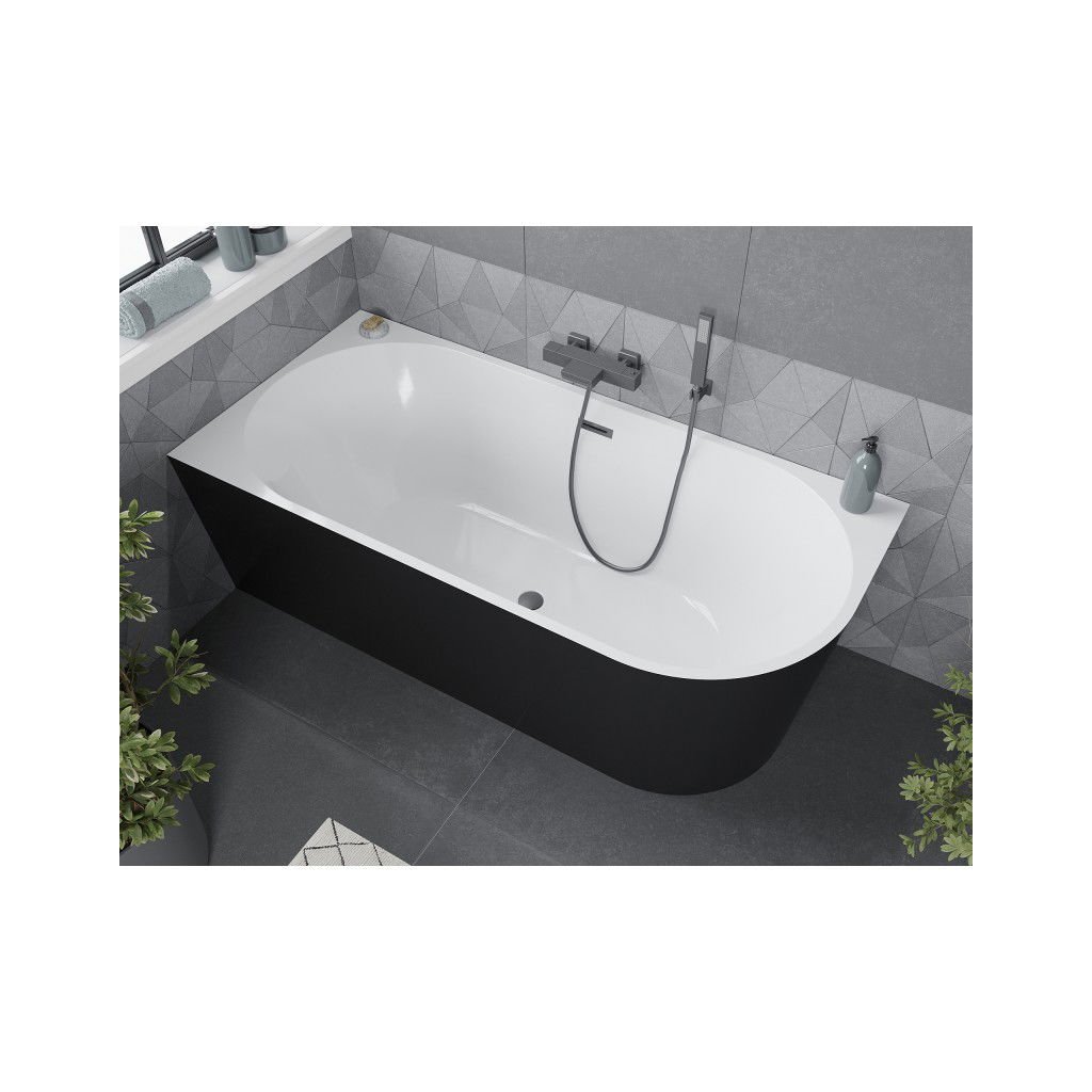 Mexen Mia, voľne stojaca rohová vaňa ľavá 160 x 80 cm, biela/čierna, grafitový prepad, 52691608075L-95