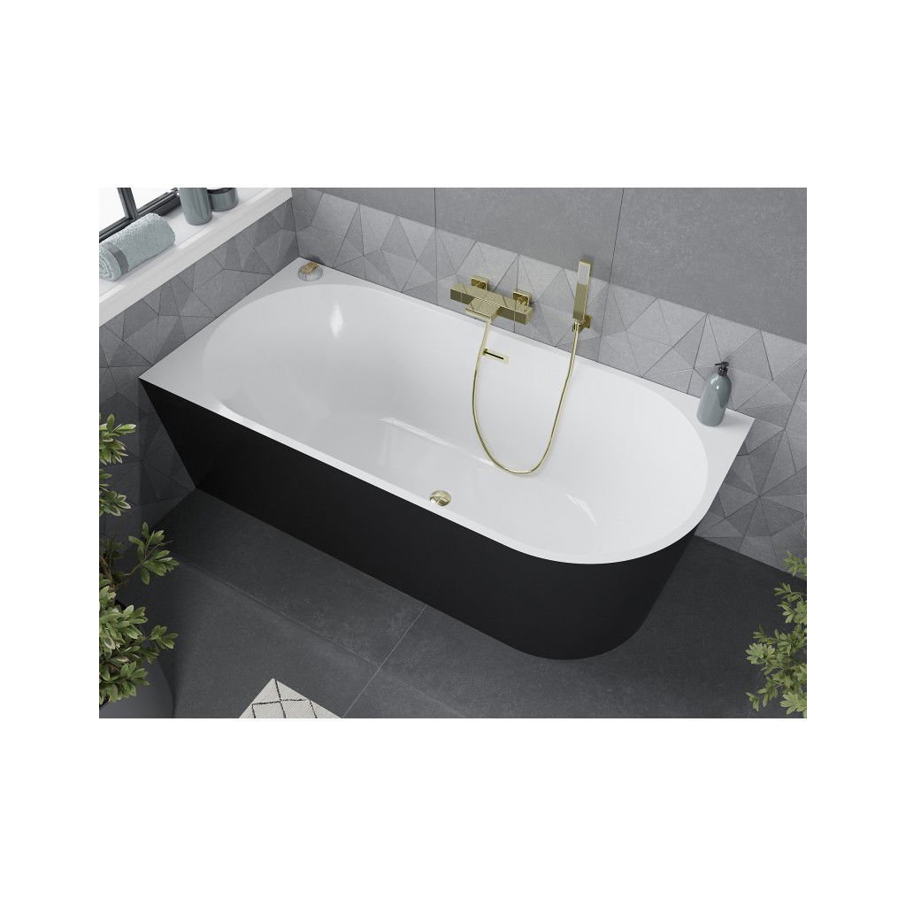Mexen Mia, voľne stojaca rohová vaňa ľavá 160 x 80 cm, biela/čierna, zlatý lesklý prepad, 52691608075L-50