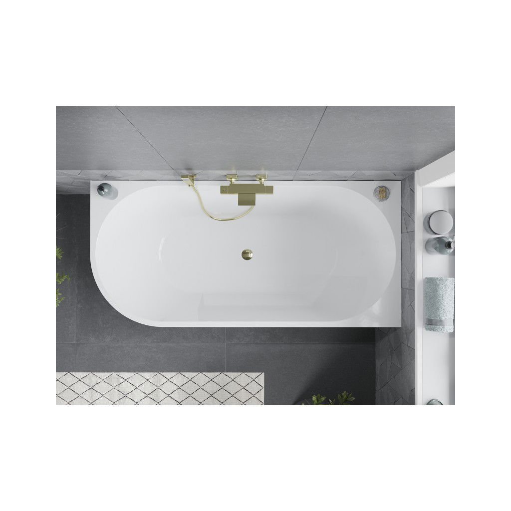 Mexen Mia, voľne stojaca rohová vaňa pravá 140 x 75 cm, biela/čierna, zlatý lesklý prepad, 52691407575P-50