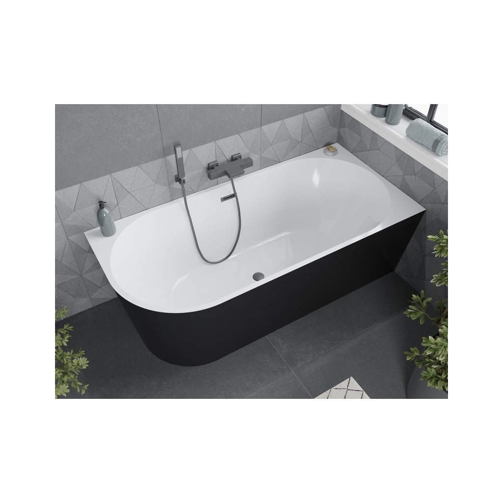 Mexen Mia, voľne stojaca rohová vaňa pravá 160 x 80 cm, biela/čierna, grafitový prepad, 52691608075P-95