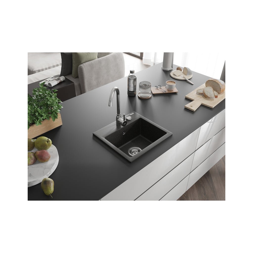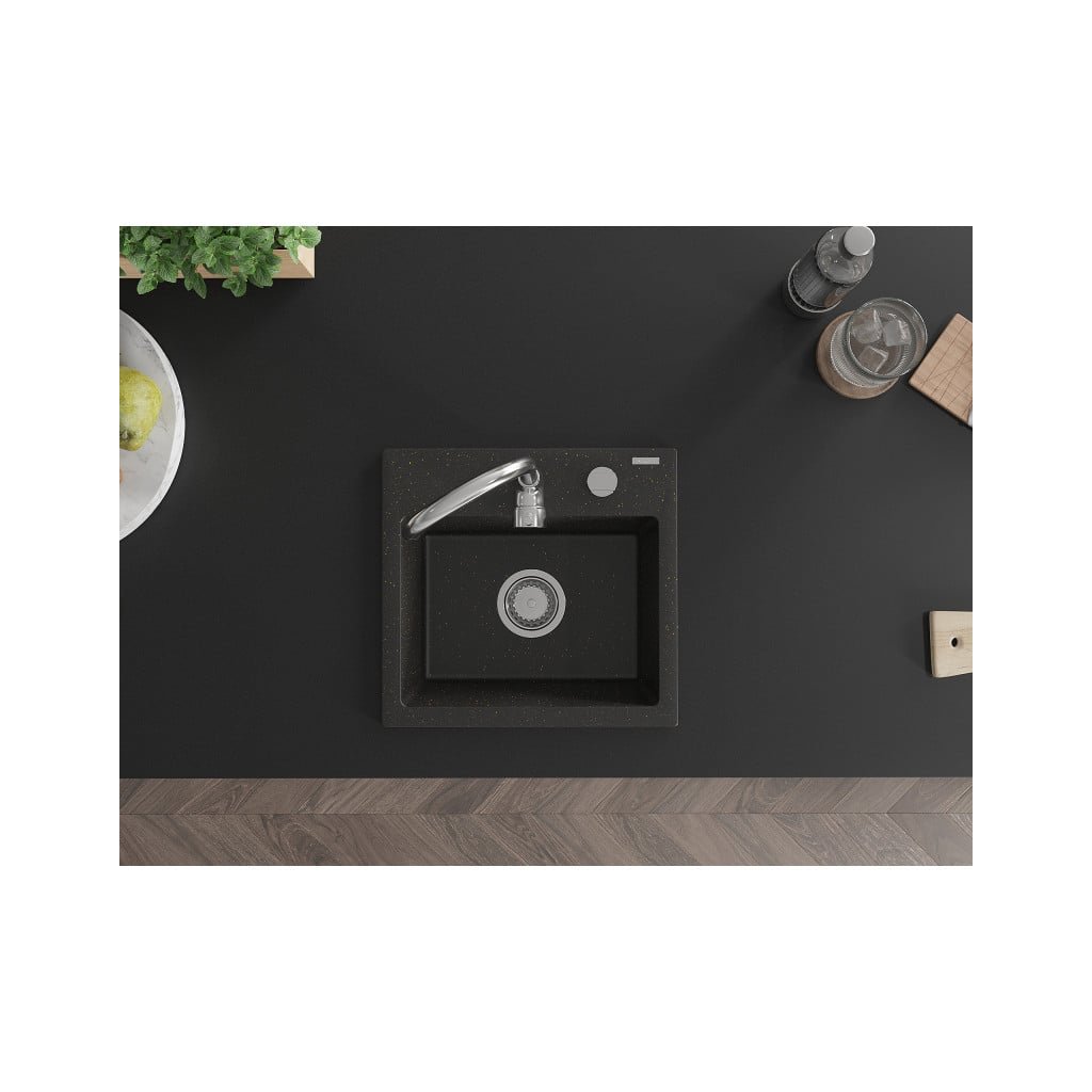 Mexen Milo - drez granitový 43,5x41,0cm, 1-komorový, čierna-zlatá, 6505441000-75