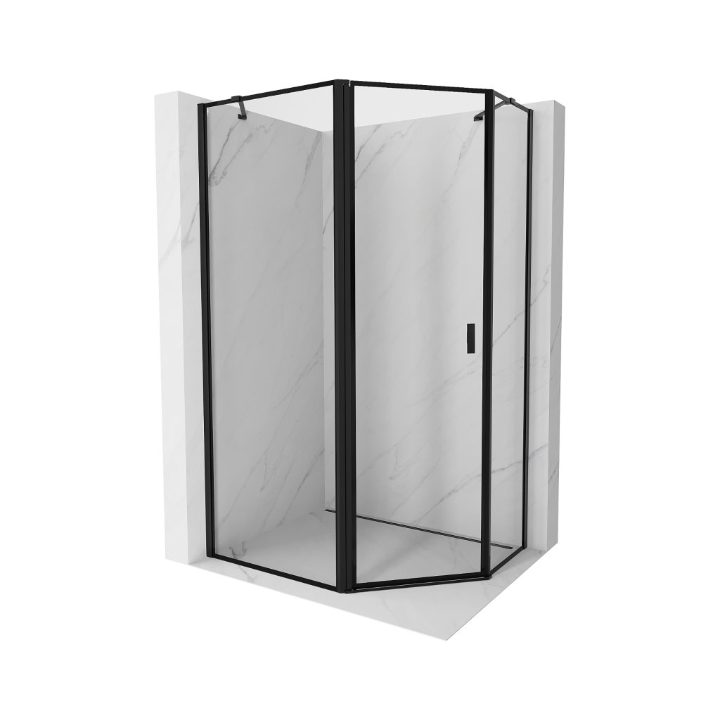 Mexen Mist, päťuholníkový sprchový kút, ľavý 100 x 80 cm, číre sklo-čierny rám, 8A8-100-080-70-70-L
