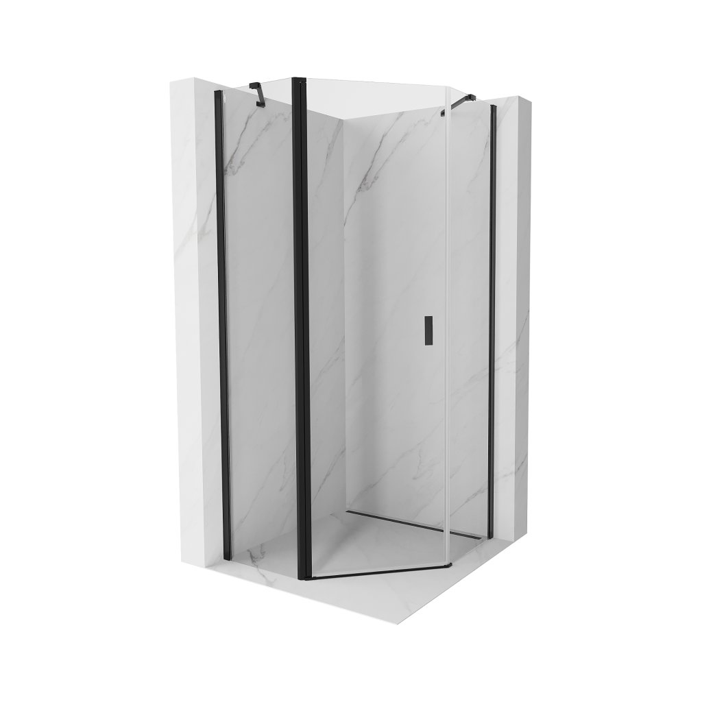 Mexen Mist, päťuholníkový sprchový kút výklopný 100 x 100 cm, číre sklo, čierny profil, 8A8-100-100-70-00