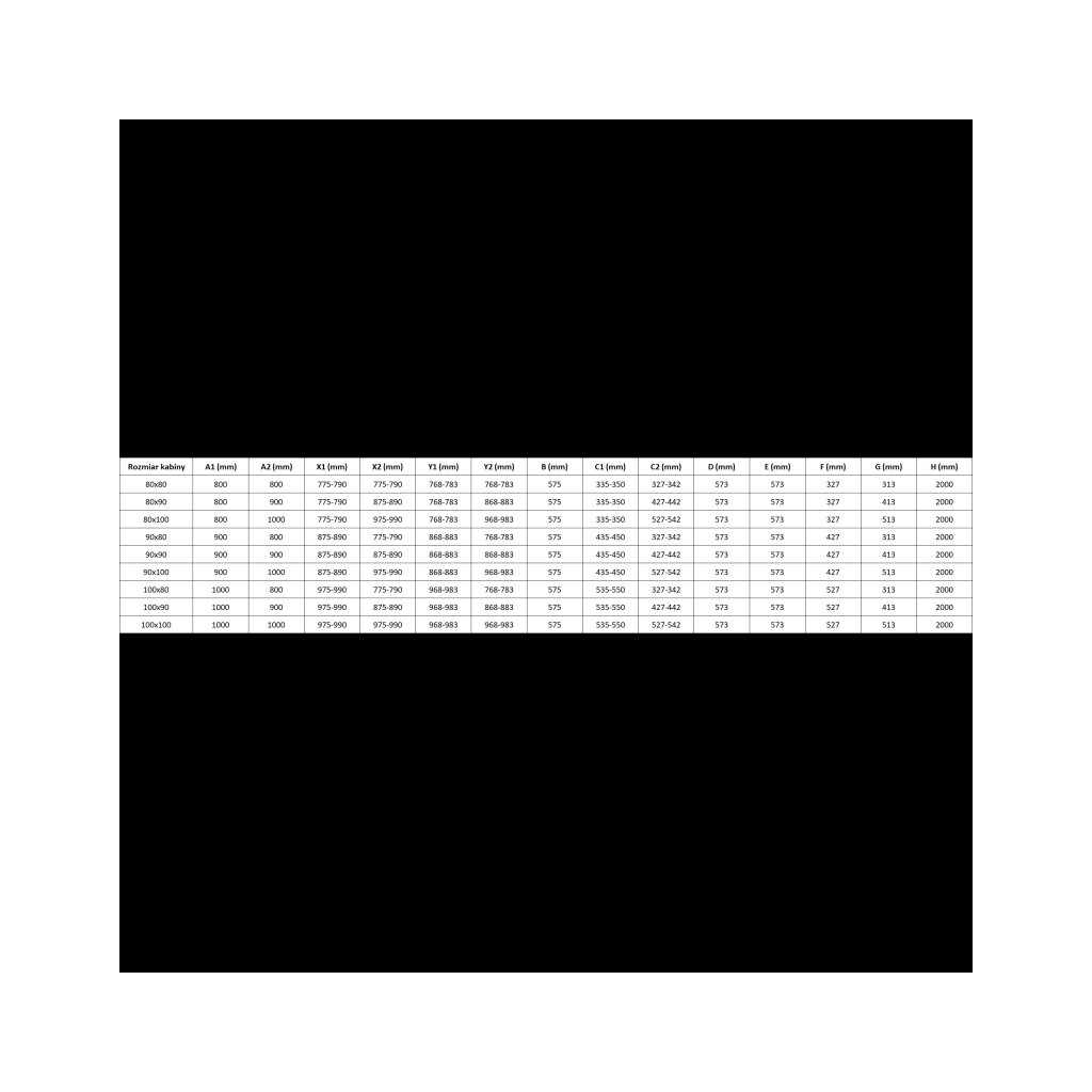 - Rozmer: 100x90 cm (ľavé dvere 100 cm, stena 90 cm)
