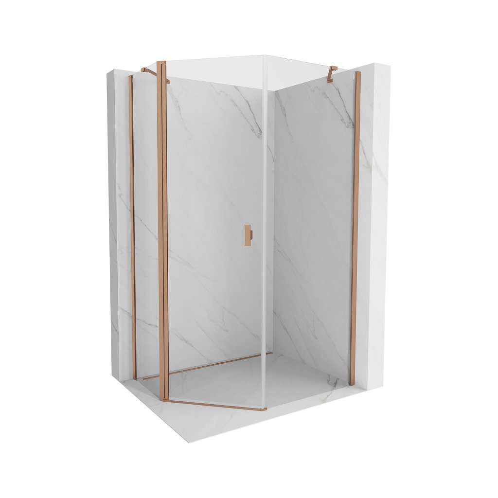 Mexen Mist, päťuholníkový sprchový kút výklopný 90 x 100 cm, číre sklo, medený matný profil, 8A8-090-100-65-00