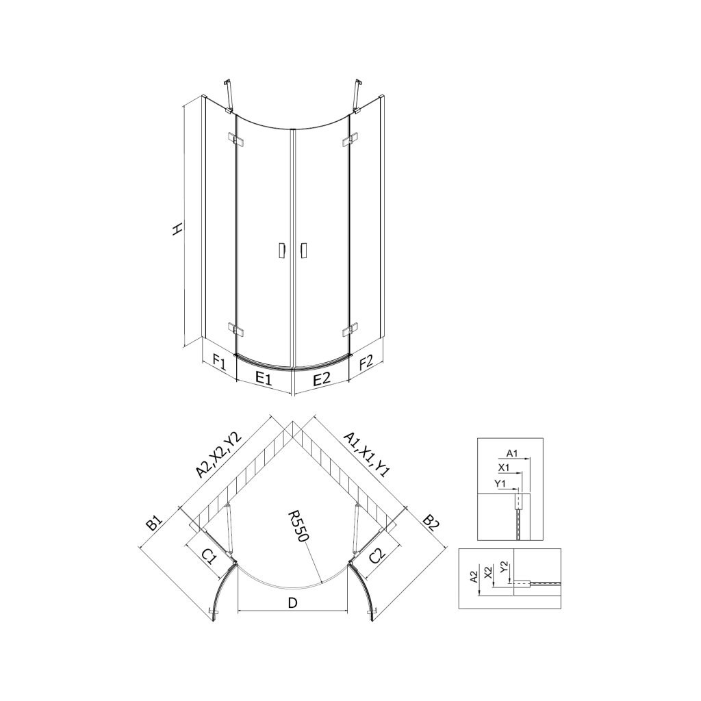 - Hrúbka Skla: 6 mm Nastaviteľná šírka Magnetická lišta a elastomérové tesnenie na odtok vody