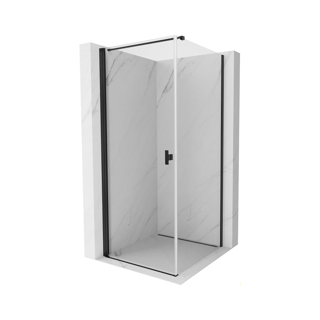Mexen Mist-B, 1-krídlový výklopný sprchový kút 85 x 85 cm, číre sklo, čierny profil, 8A2T-085-085-70-00