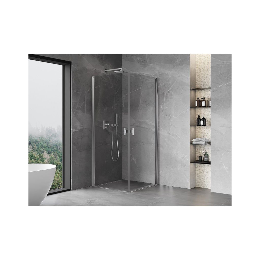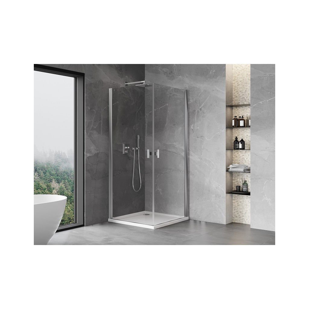 Mexen Mist-B Duo, 2-krídlový výklopný sprchový kút 75 x 75 cm, číre sklo, chrómový profil, 8A2-075-075-01-00