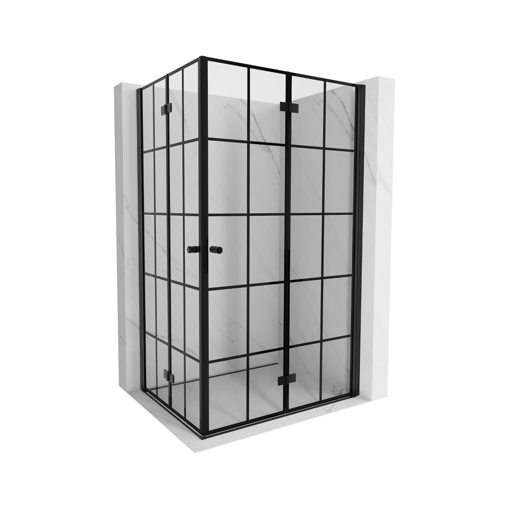 Mexen Mist-F Duo, skladací sprchový kút 110 x 120 cm, číre sklo-čierna mriežka, 8A6-110L-120P-70-77