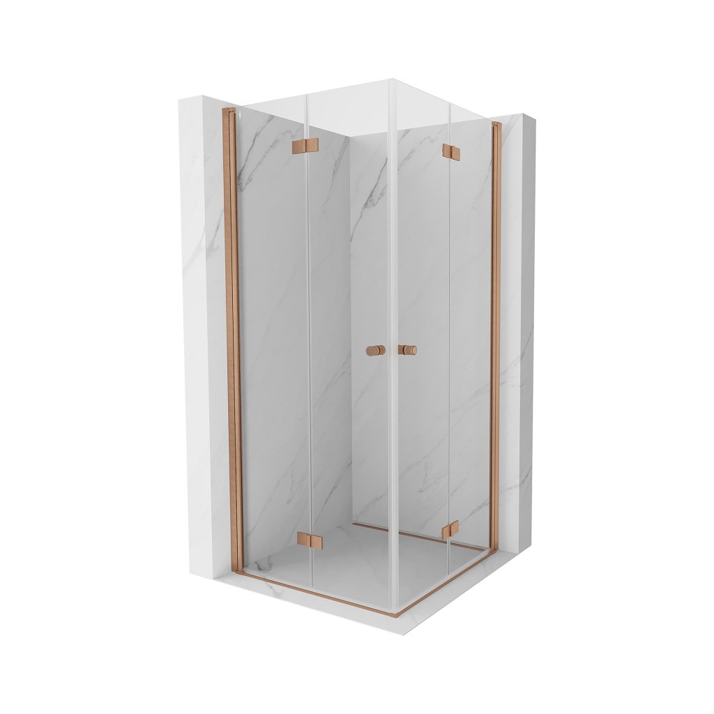 Mexen Mist-F Duo, skladací sprchový kút 70 x 70 cm, priehľadný, brúsená meď - 8A6-070L-070P-65-00