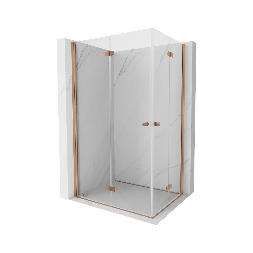Mexen Mist-F Duo, skladací sprchový kút 75 x 70 cm, priehľadný, brúsená meď - 8A6-075L-070P-65-00