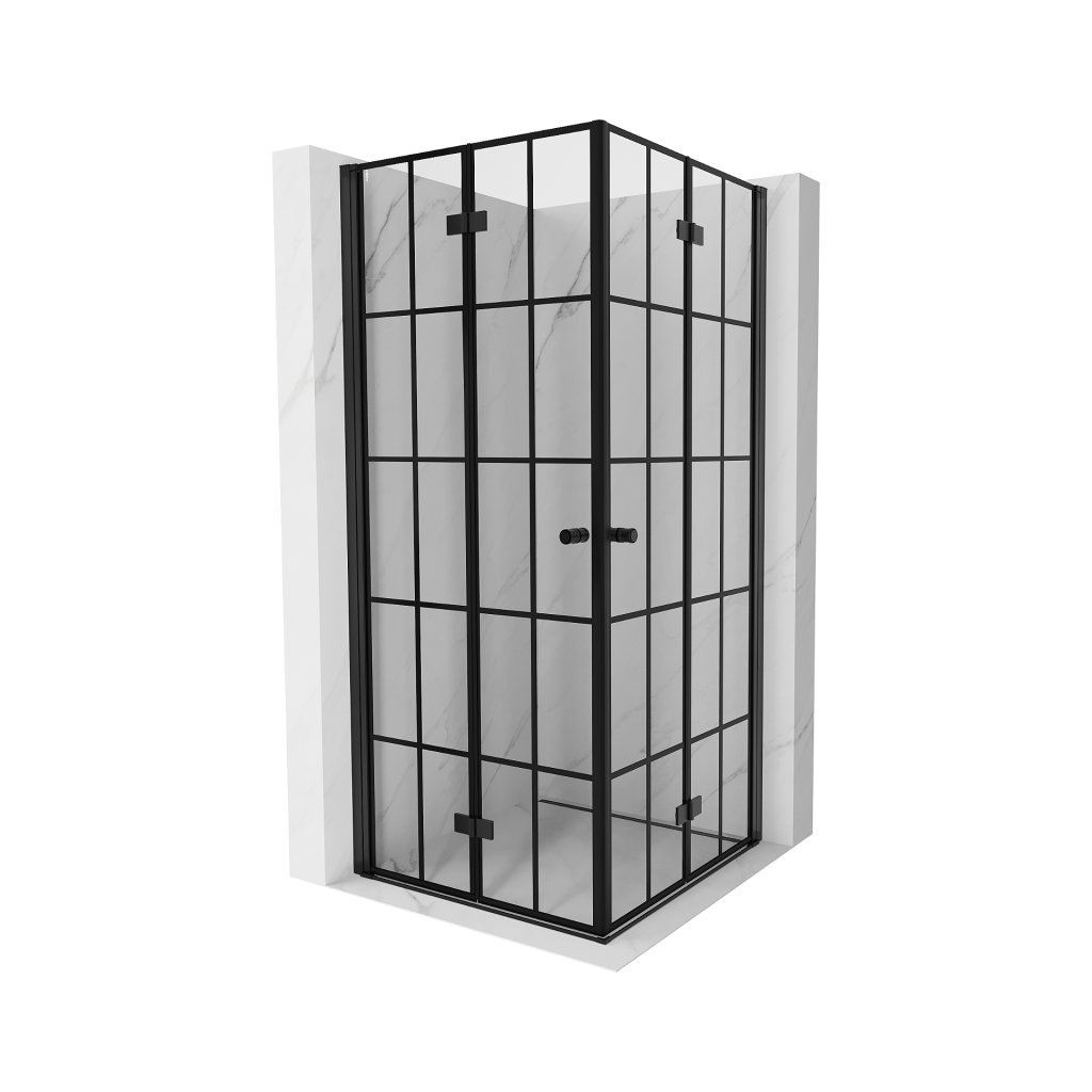 Mexen Mist-F Duo, skladací sprchový kút 90 x 90 cm, číre sklo-čierna mriežka, 8A6-090L-090P-70-77