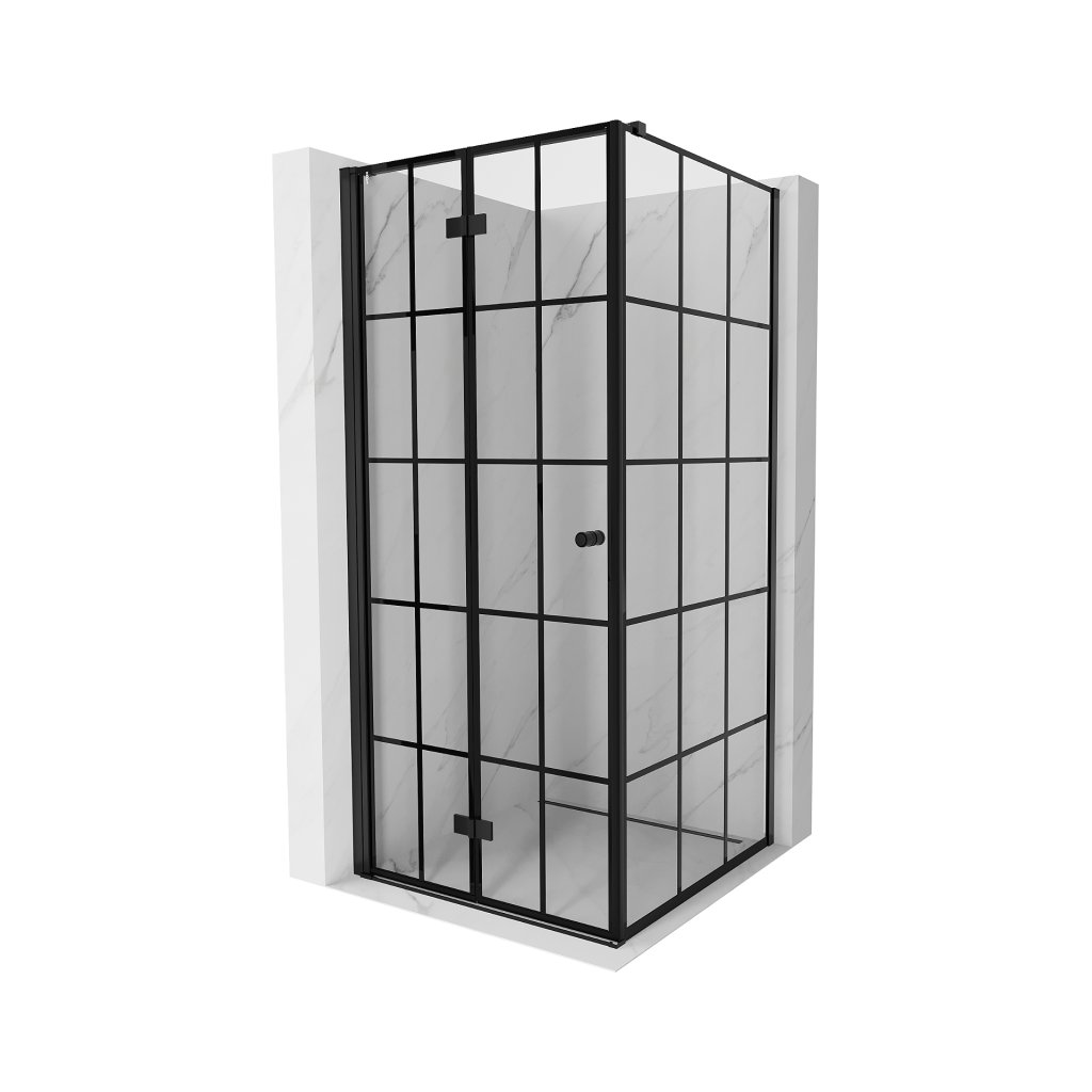 Mexen Mist-F T, 1-krídlový skladací sprchový kút ľavý 80 x 80 cm, čierna mriežka, čierny - 8A6T-080-080-70-77-L